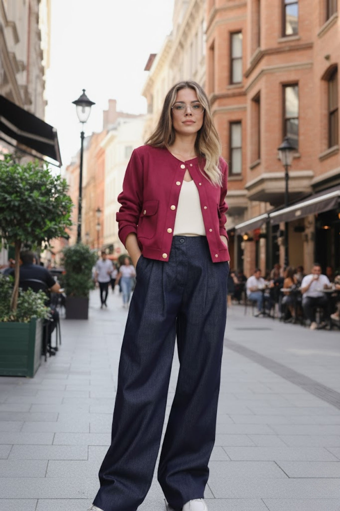 Yumuşak güderi dokusuyla şık ve zarif bir his sunan bu bordo ceket, gold düğme detaylarıyla...