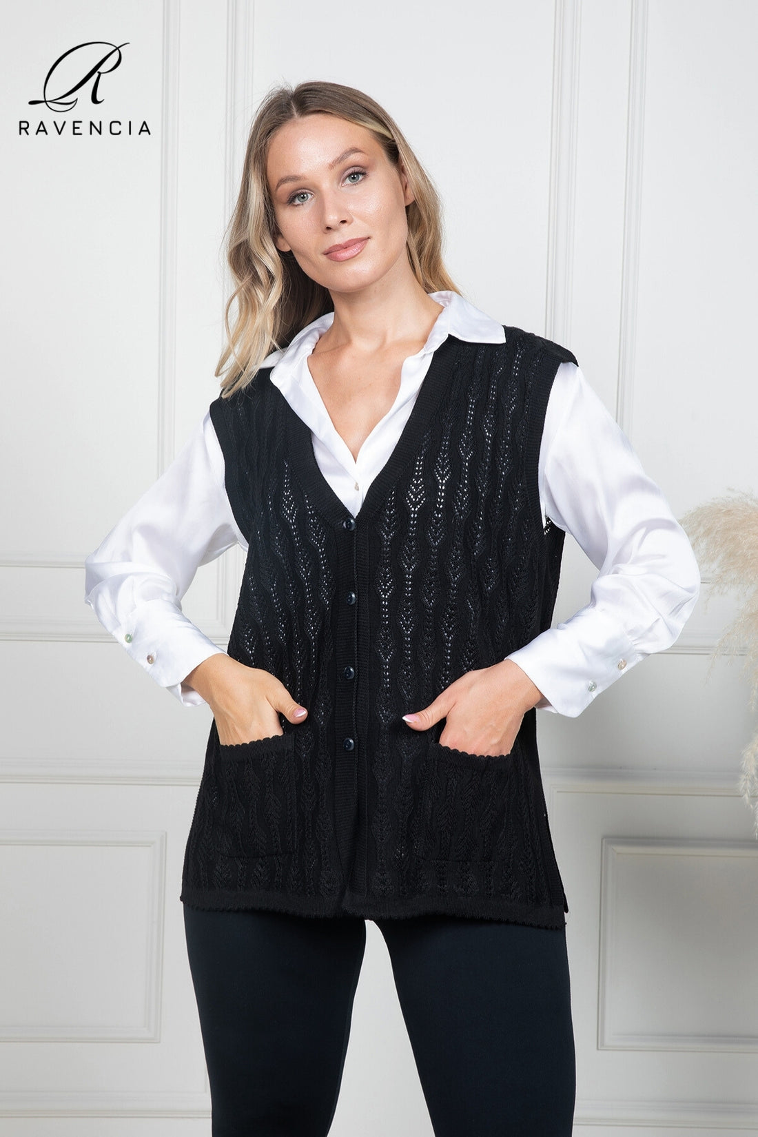 Kadın ince triko örgü düğmeli anne yelek, klasik ve rahat bir stile sahiptir. Yumuşak triko...