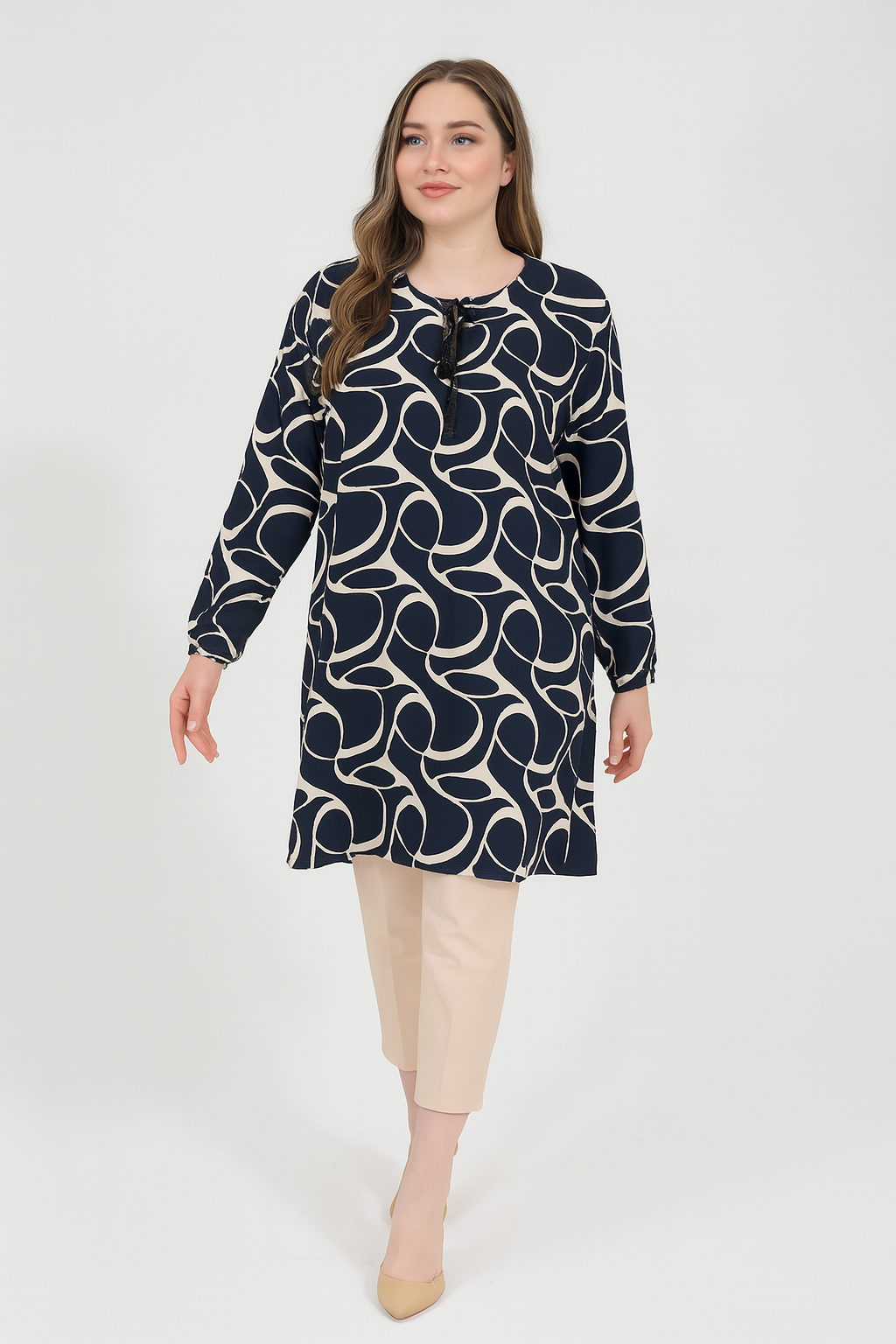 Kadın halka desenli dokuma tunik, modern ve zarif bir görünüme sahiptir. Dokuma kumaşı nefes alabilir...