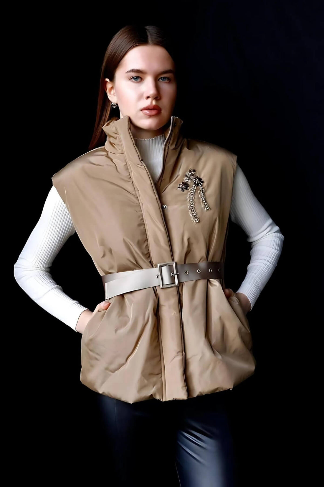 Kadın Kemerli Taş İşlemeli Şişme Yelek