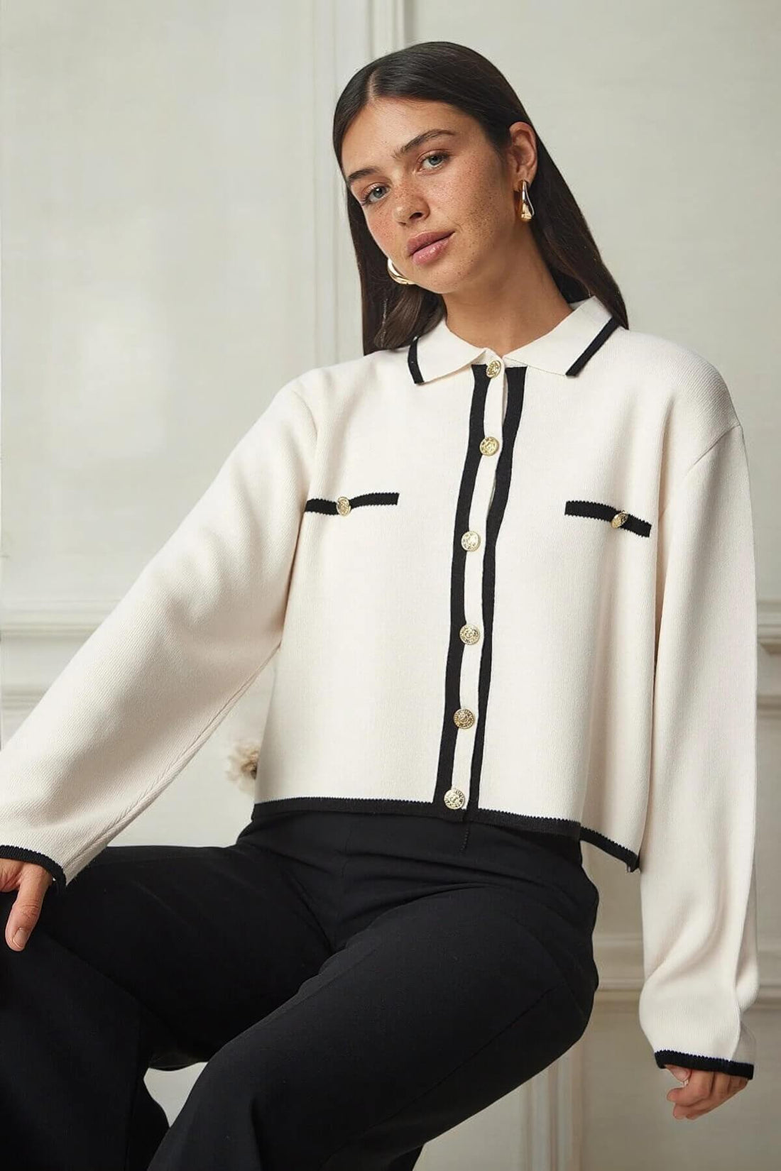Kumaş Bilgisi: %70 Akrilik, %30 YünÜrün Özellikleri: Polo yaka, düşük omuzlu, metal düğme kapamalı, cep...