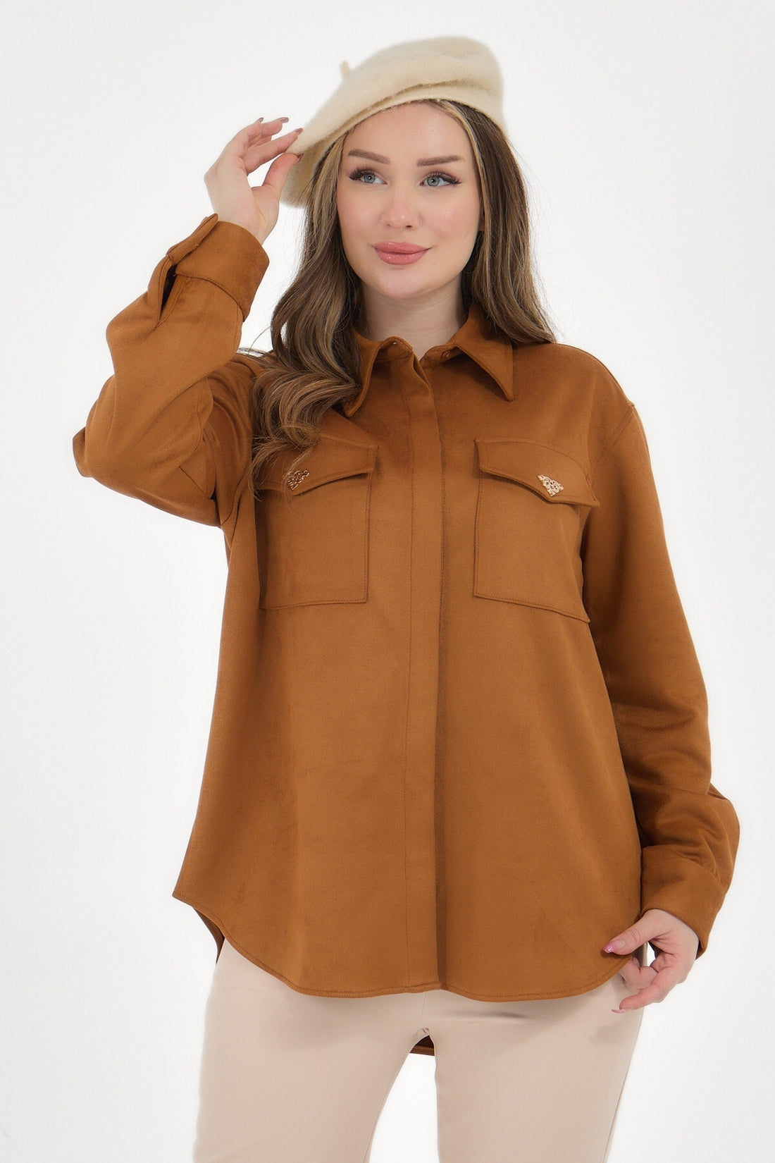 Kadın taba süet gömlek ceket, şıklık ve konforu bir arada sunan zamansız bir parçadır. Yumuşak...