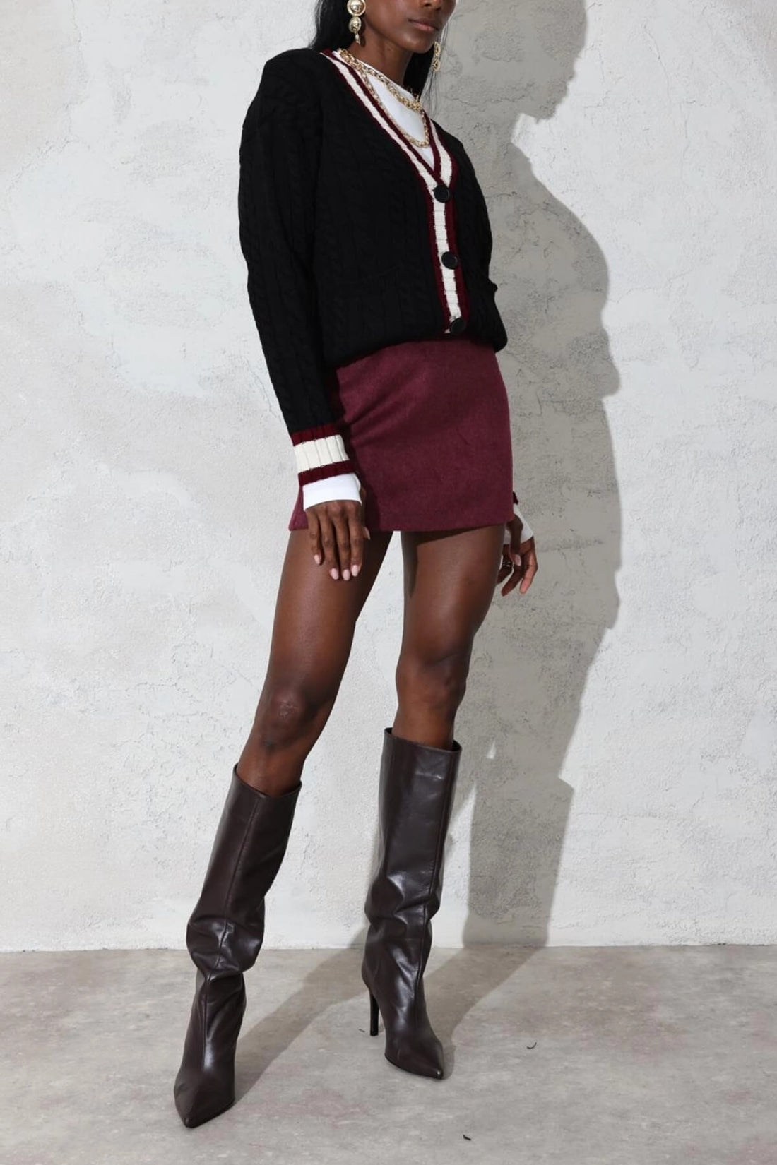 Sıcak tutan kaşe dokusuyla hem şık hem fonksiyonel bir yapı sunan bu mini etek, premium...