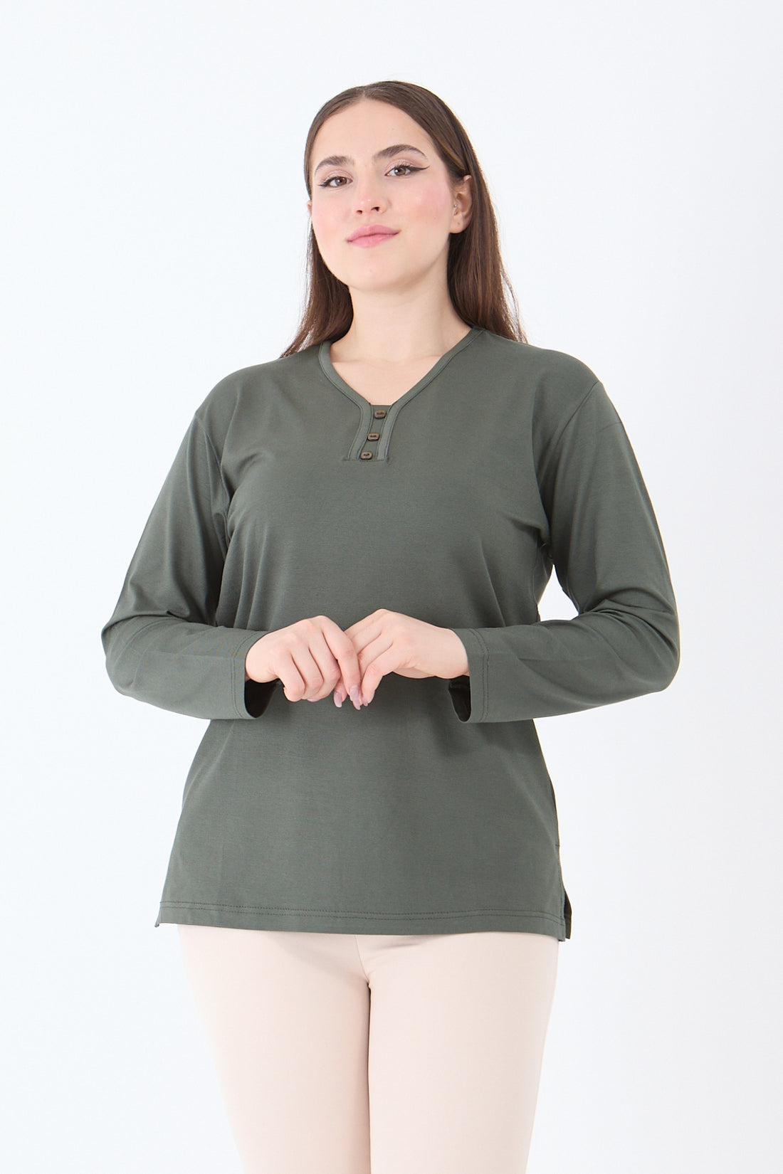 Kadın V Yaka Likralı Viskon Anne Penye Bluz