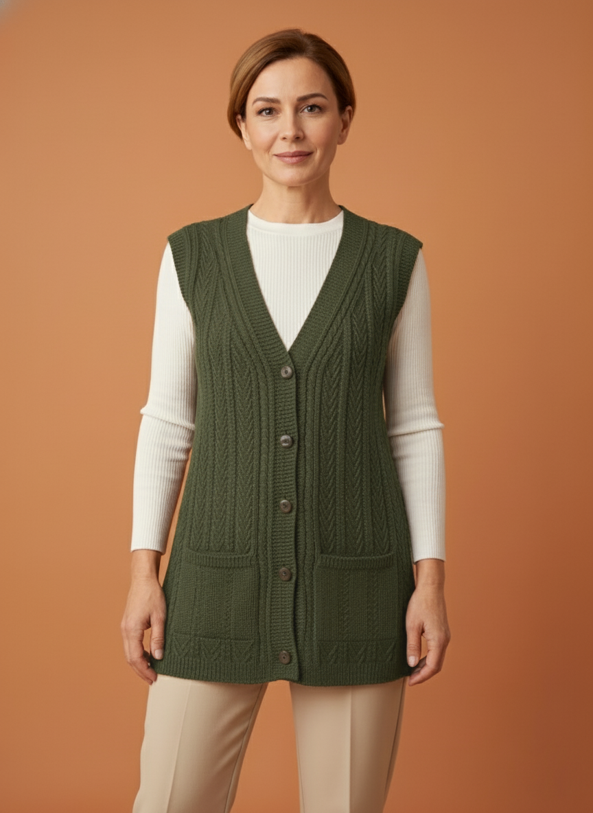 Kadın Düğmeli Esnek Kalın Anne Triko Yelek