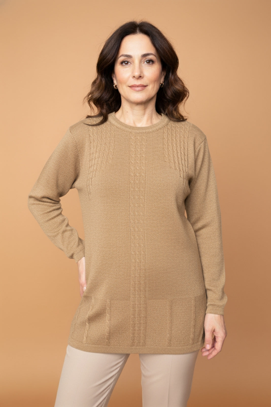 Kadın Bisiklet Yaka Likralı Desenli Triko Anne Kazak