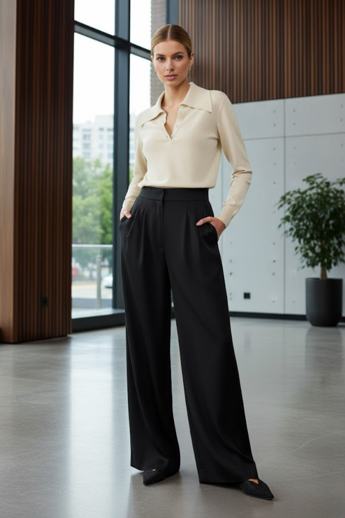 Kadın palazzo yüksek bel pileli pantolon, zarif ve modern bir tarza sahiptir. Yüksek bel tasarımı...