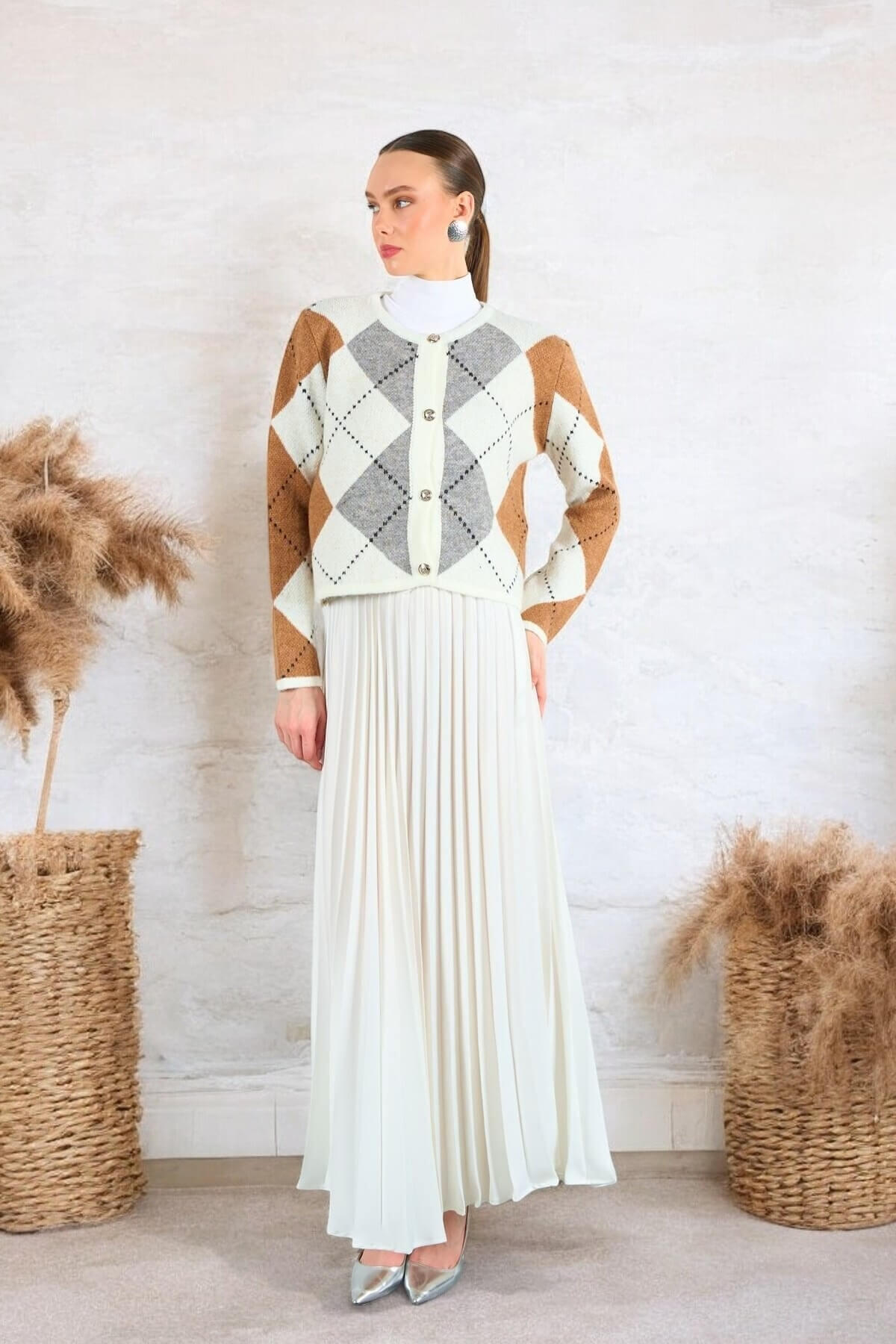 Baklava desenli triko dokusu modern bir görünüm kazandırır.