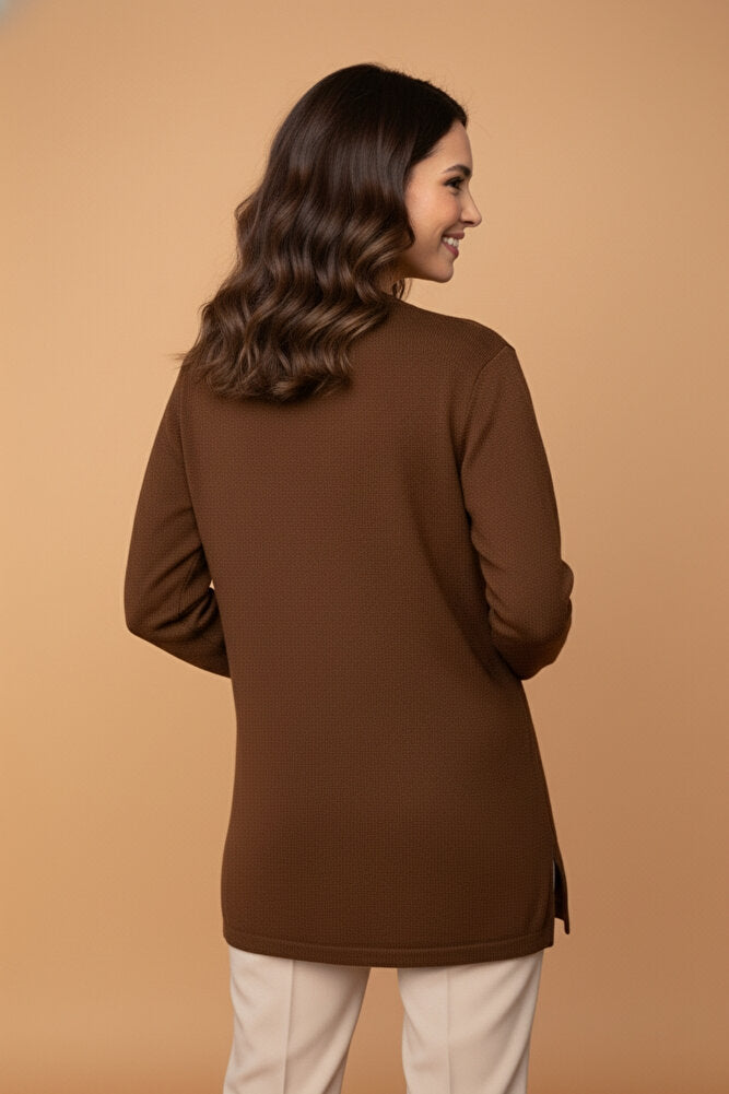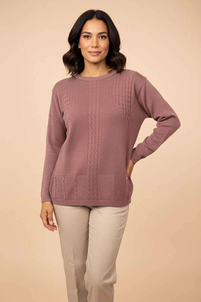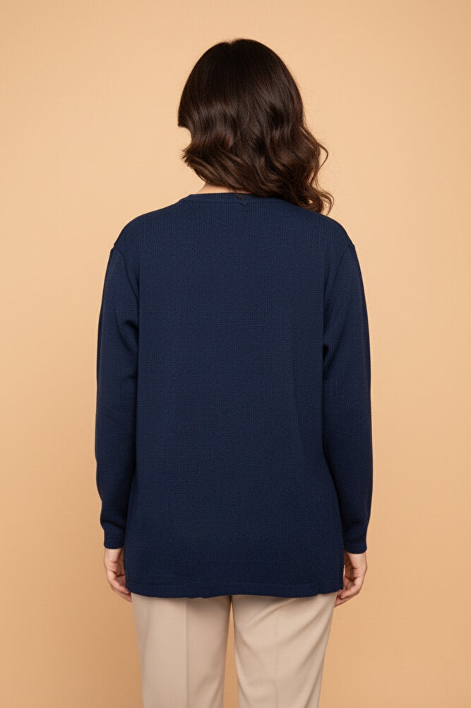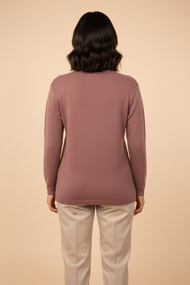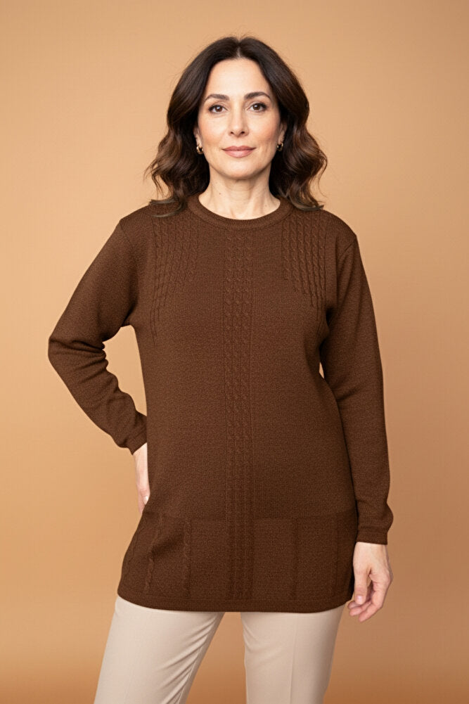 Kadın Bisiklet Yaka Likralı Desenli Triko Anne Kazak