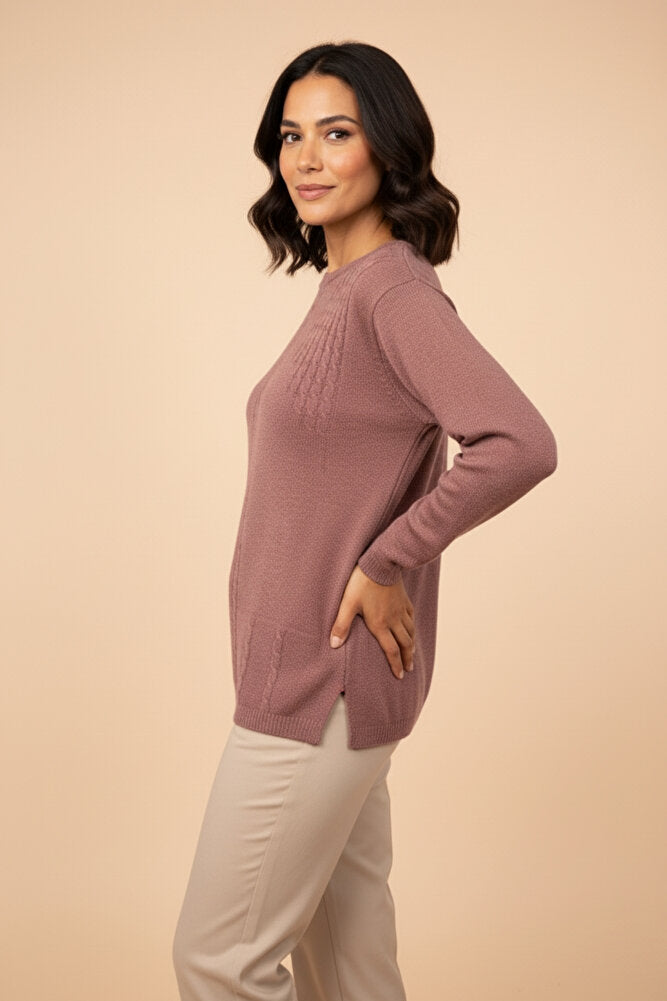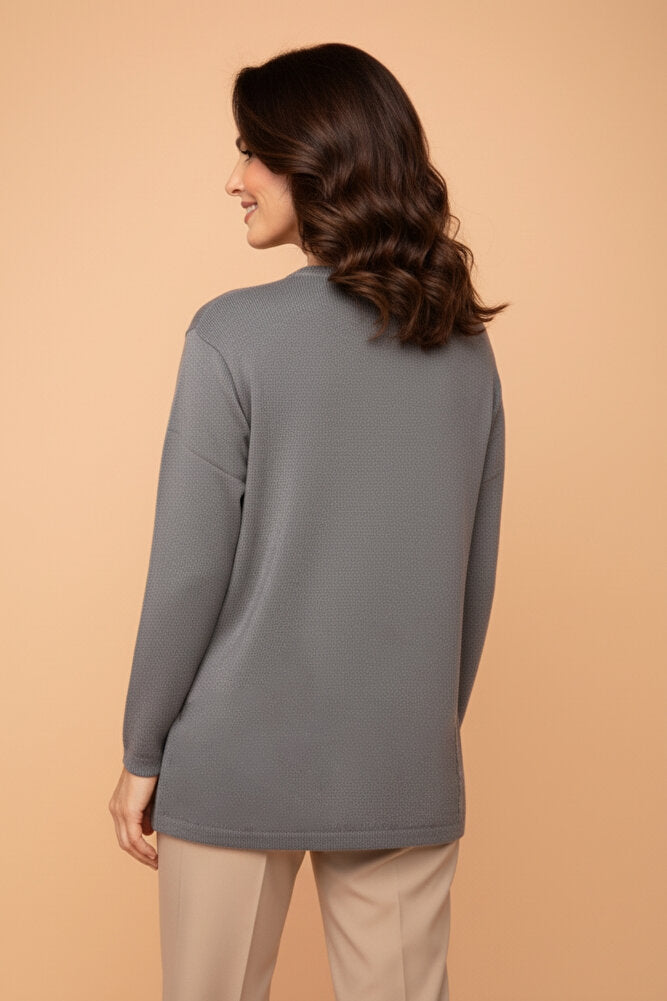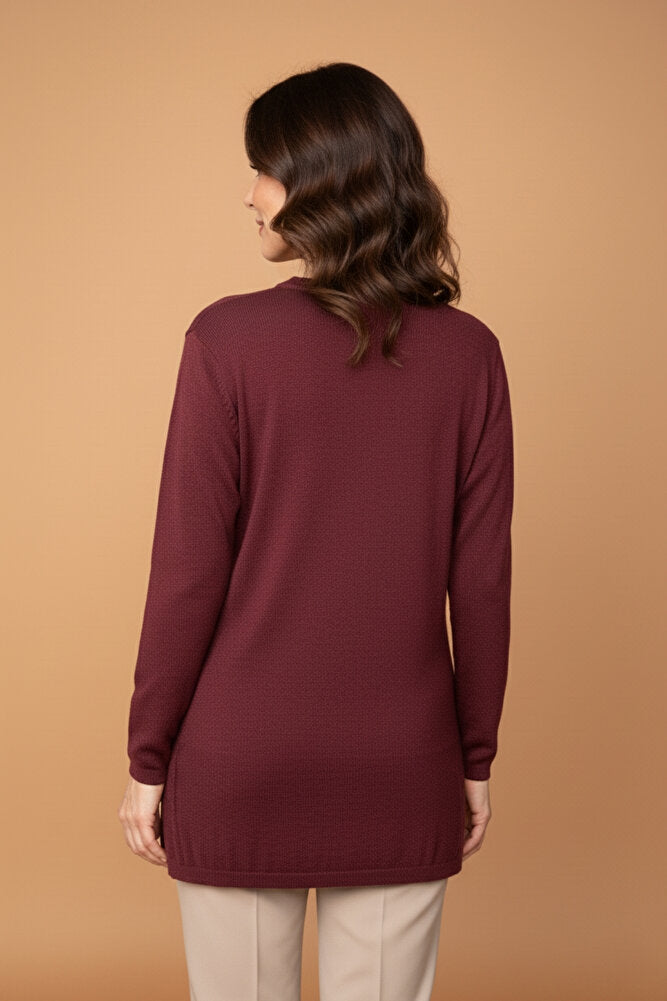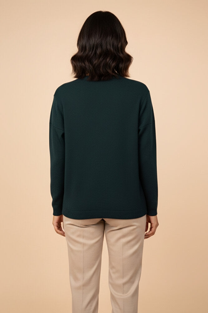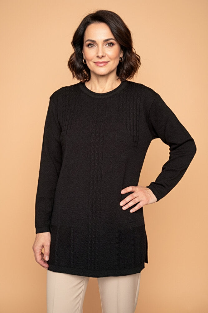 Kadın Bisiklet Yaka Likralı Desenli Triko Anne Kazak