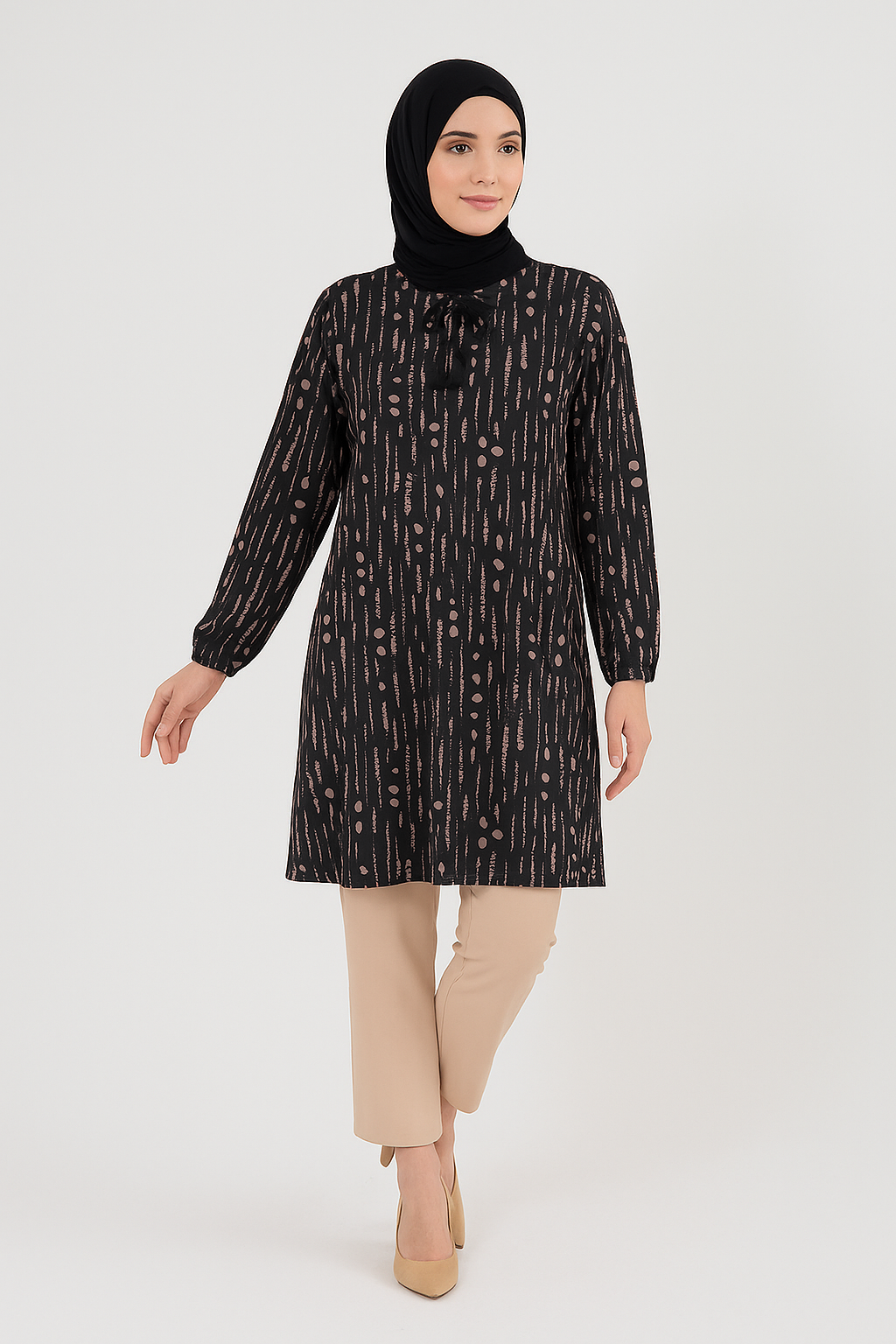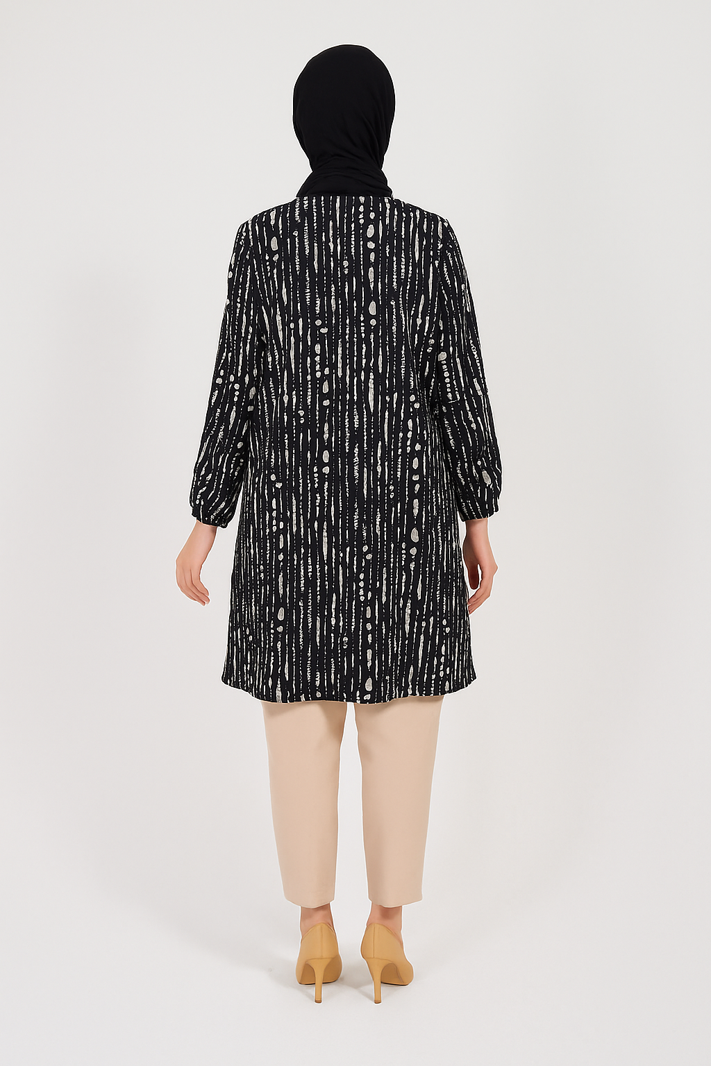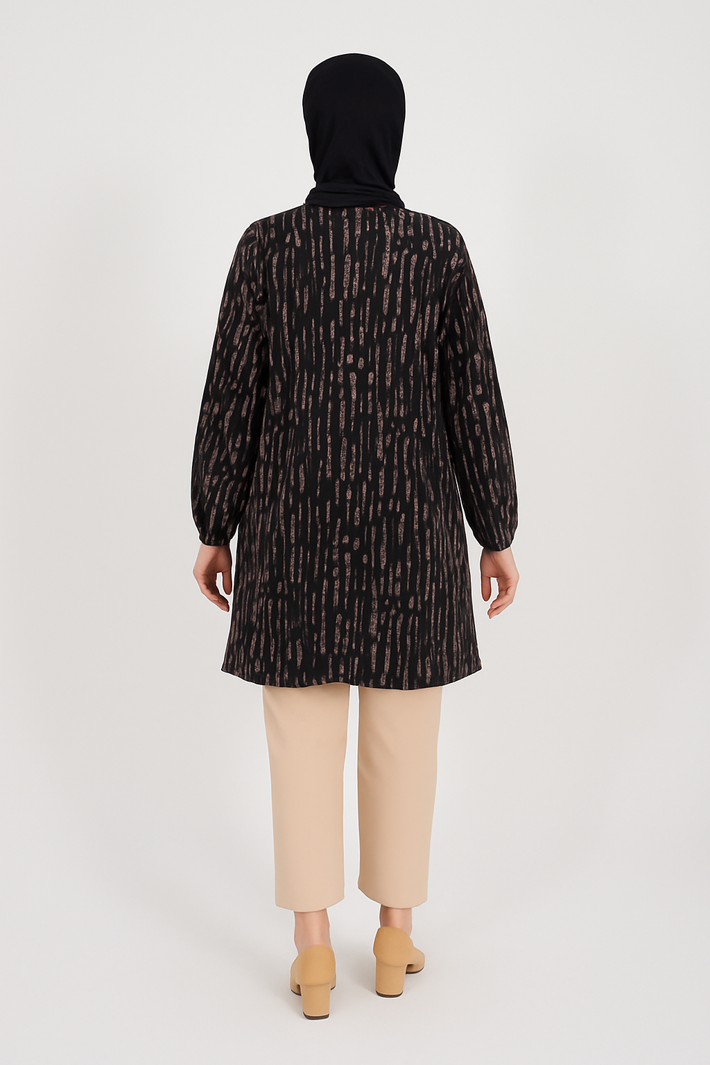Çizgi deseniyle zamansız bir şıklık sunan bu tunik, sade ve modern tarzı bir araya getirir.