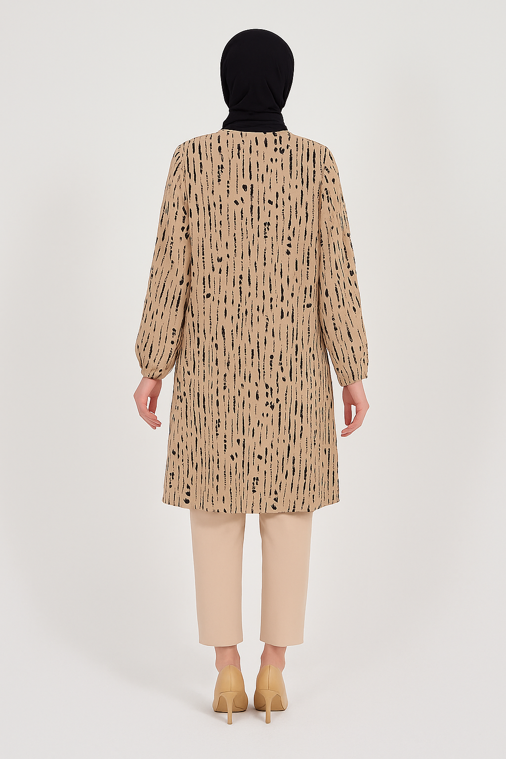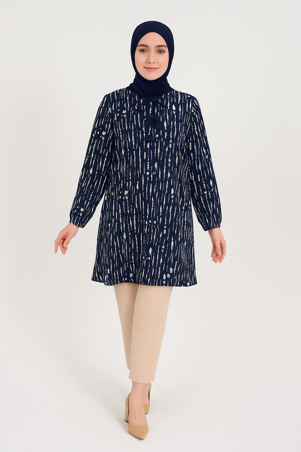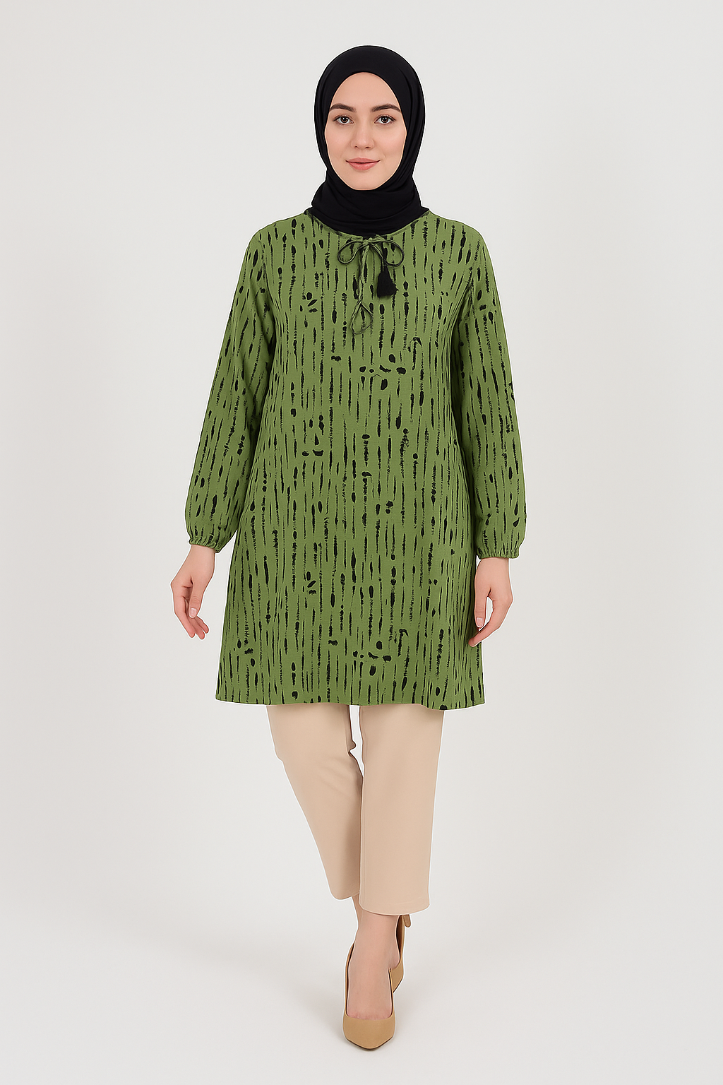 Çizgi deseniyle zamansız bir şıklık sunan bu tunik, sade ve modern tarzı bir araya getirir.