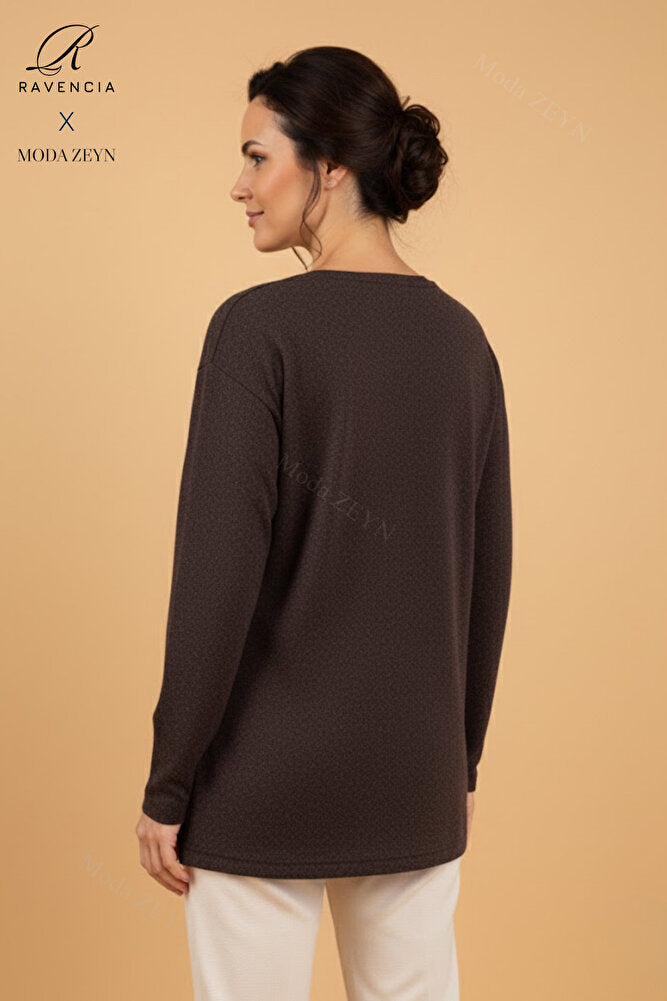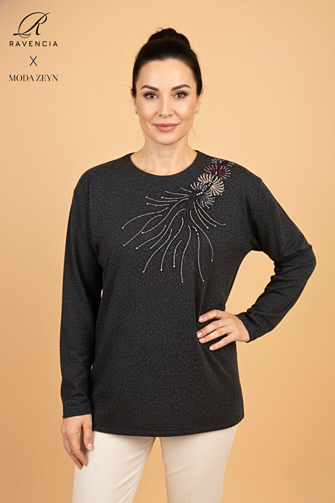 Kadın Damla Desenli Taşlı Likralı Yırtmaçlı Yün Anne Penye Bluz
