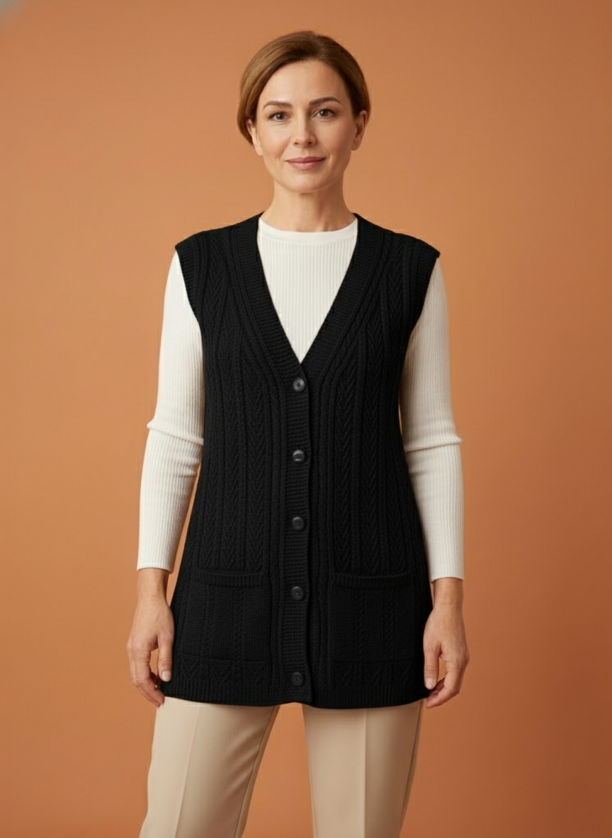 Mevsim Geçişleri İçin İdeal: Kolsuz tasarımı, mevsim geçişlerinde elbise veya gömleklerinizin üzerine hafif bir katman olarak tercih edilebilir.