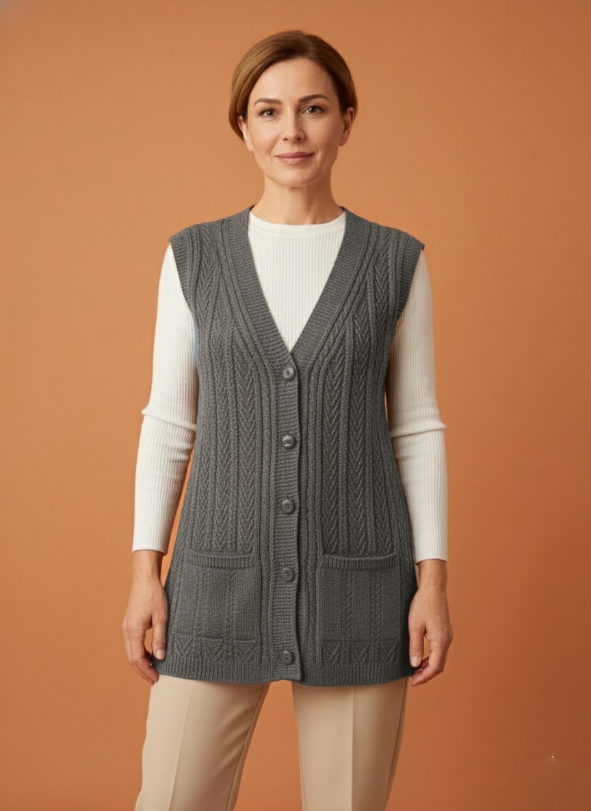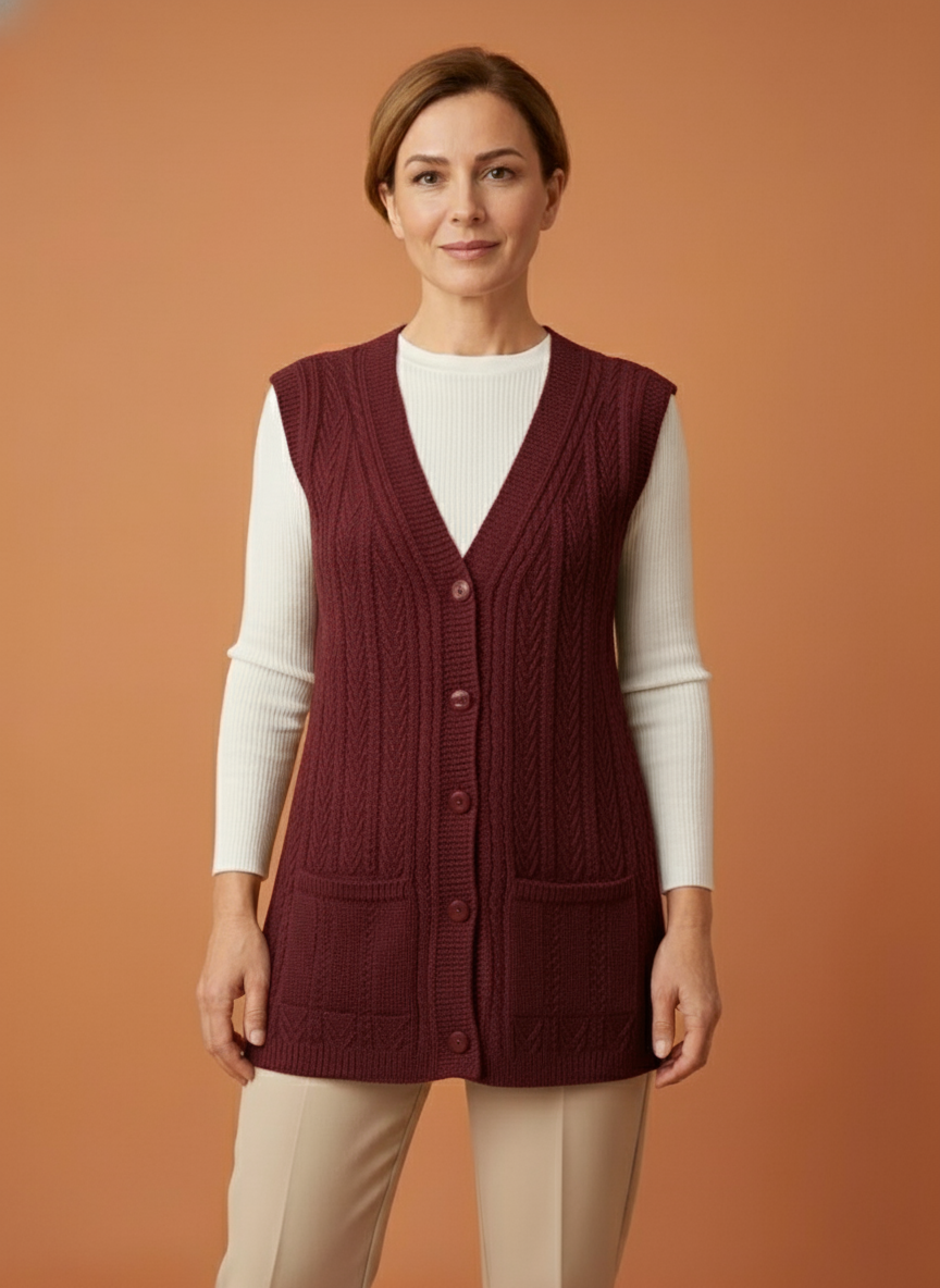 Kadın Düğmeli Esnek Kalın Anne Triko Yelek