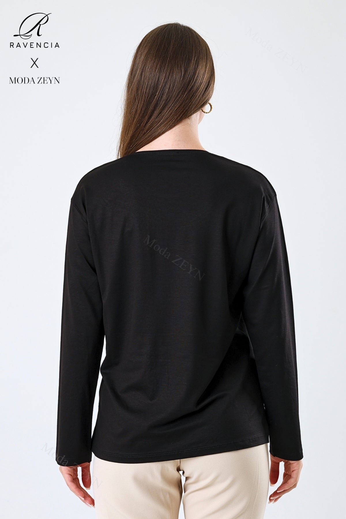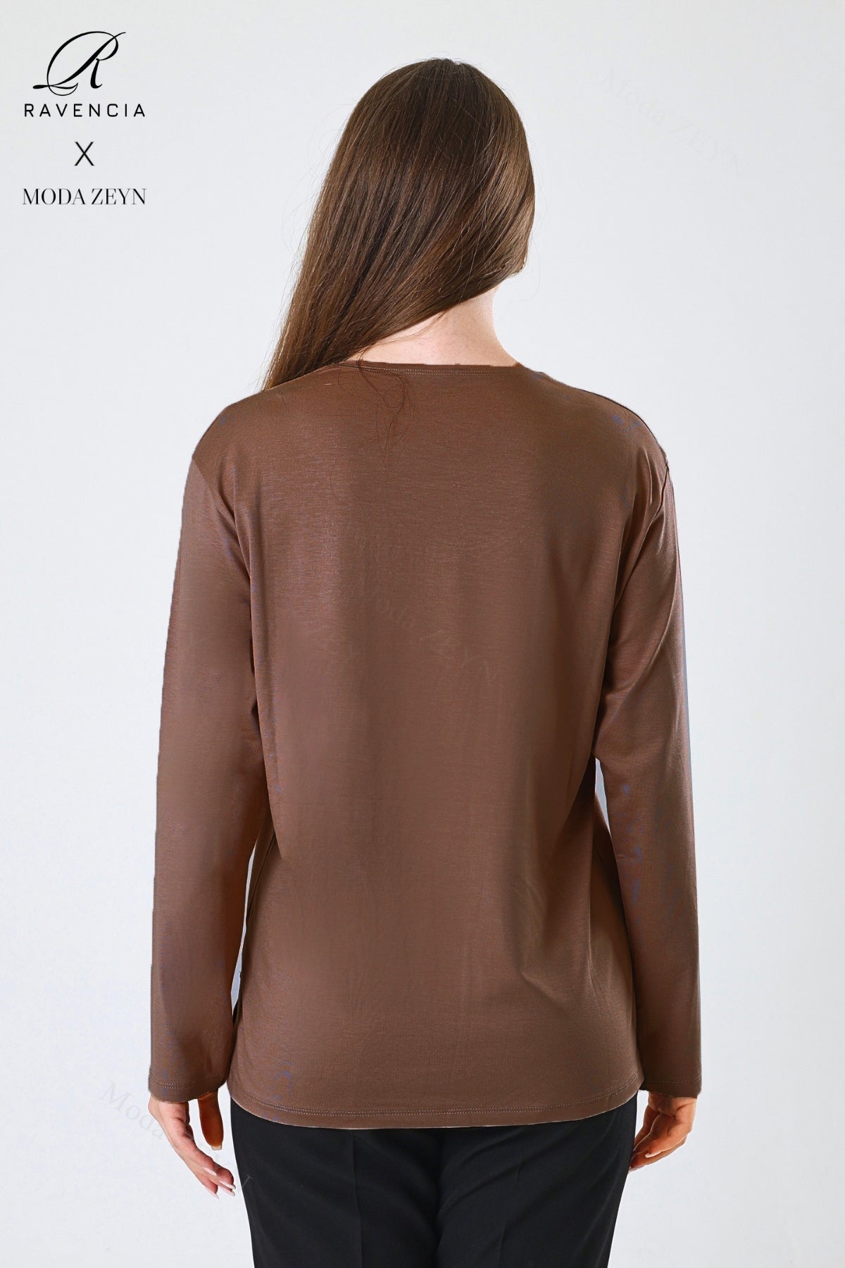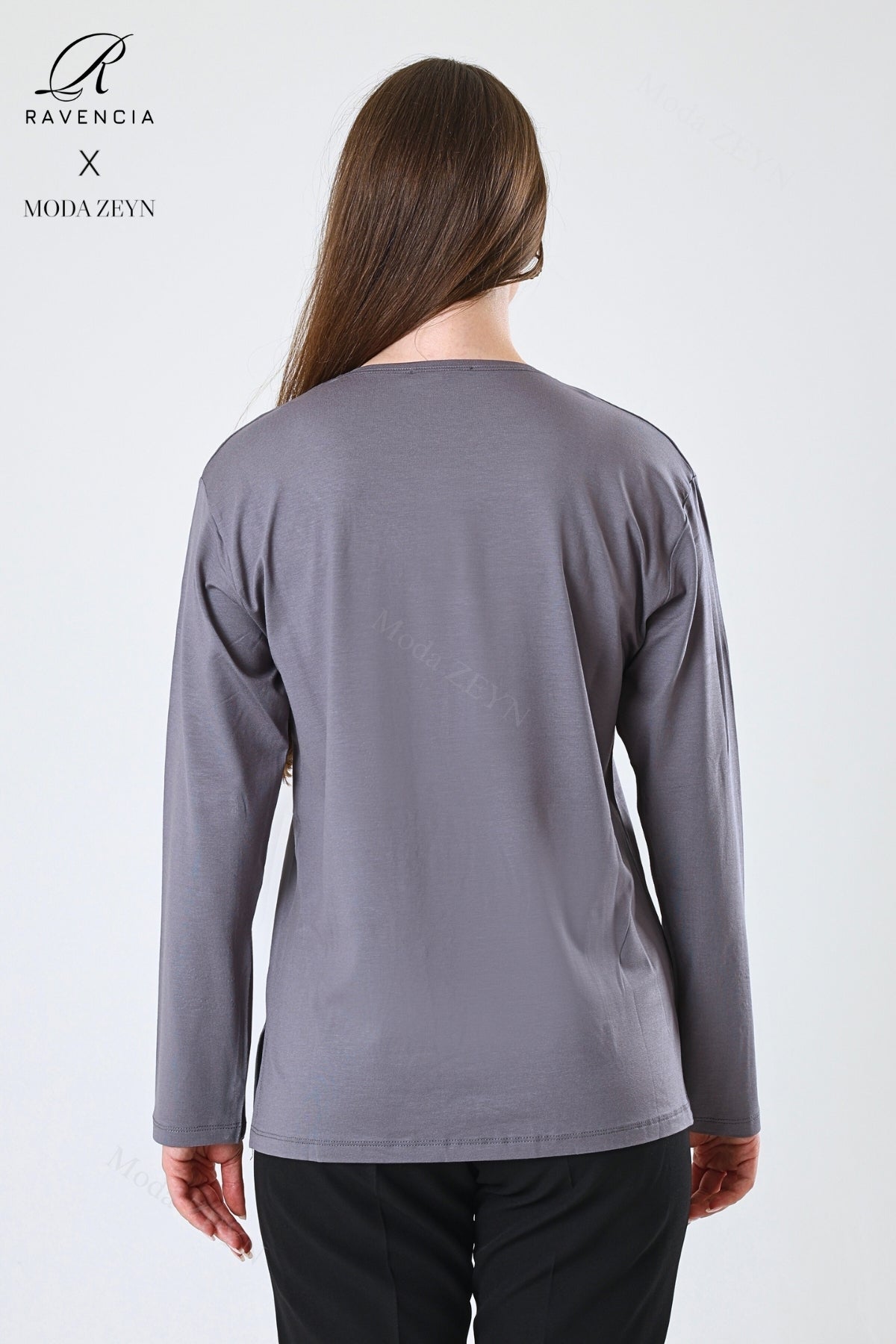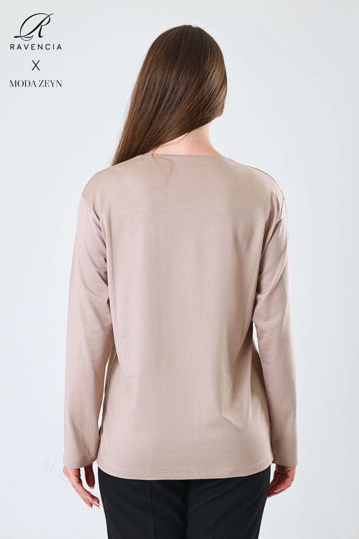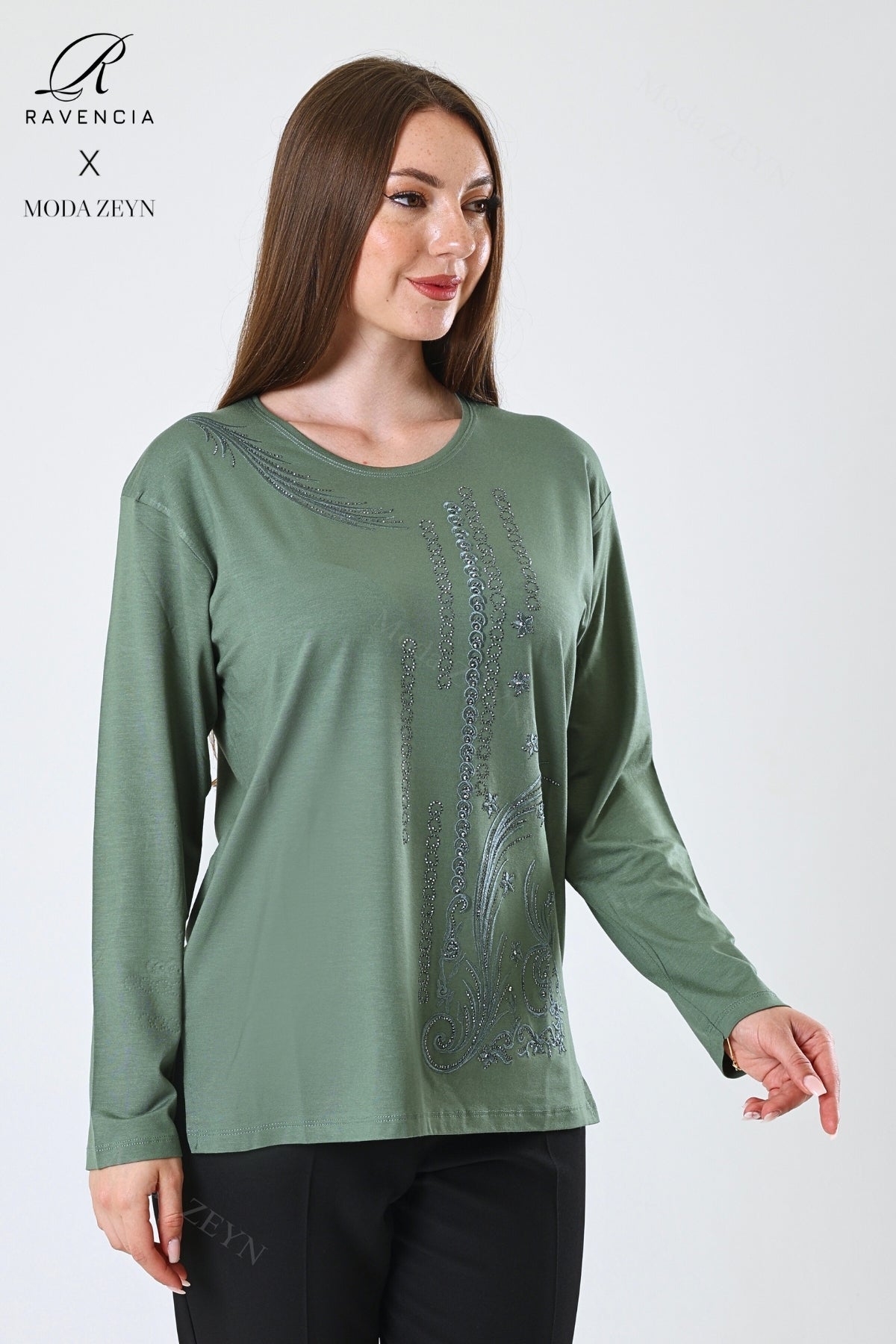 Gardırobunuzun en değerli parçası olmaya aday bu özel tasarım bluz, yüksek kaliteli viskon penye kumaşı ve göz alıcı taş işlemeleriyle şıklığı zahmetsizce yakalamanızı sağlar.