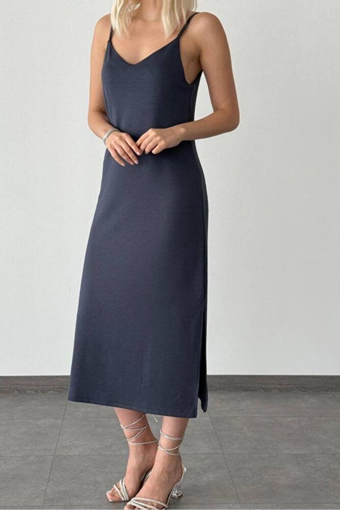 Kadın İp Askılı Çift Yırtmaç Detaylı Modal Kumaş Elbise