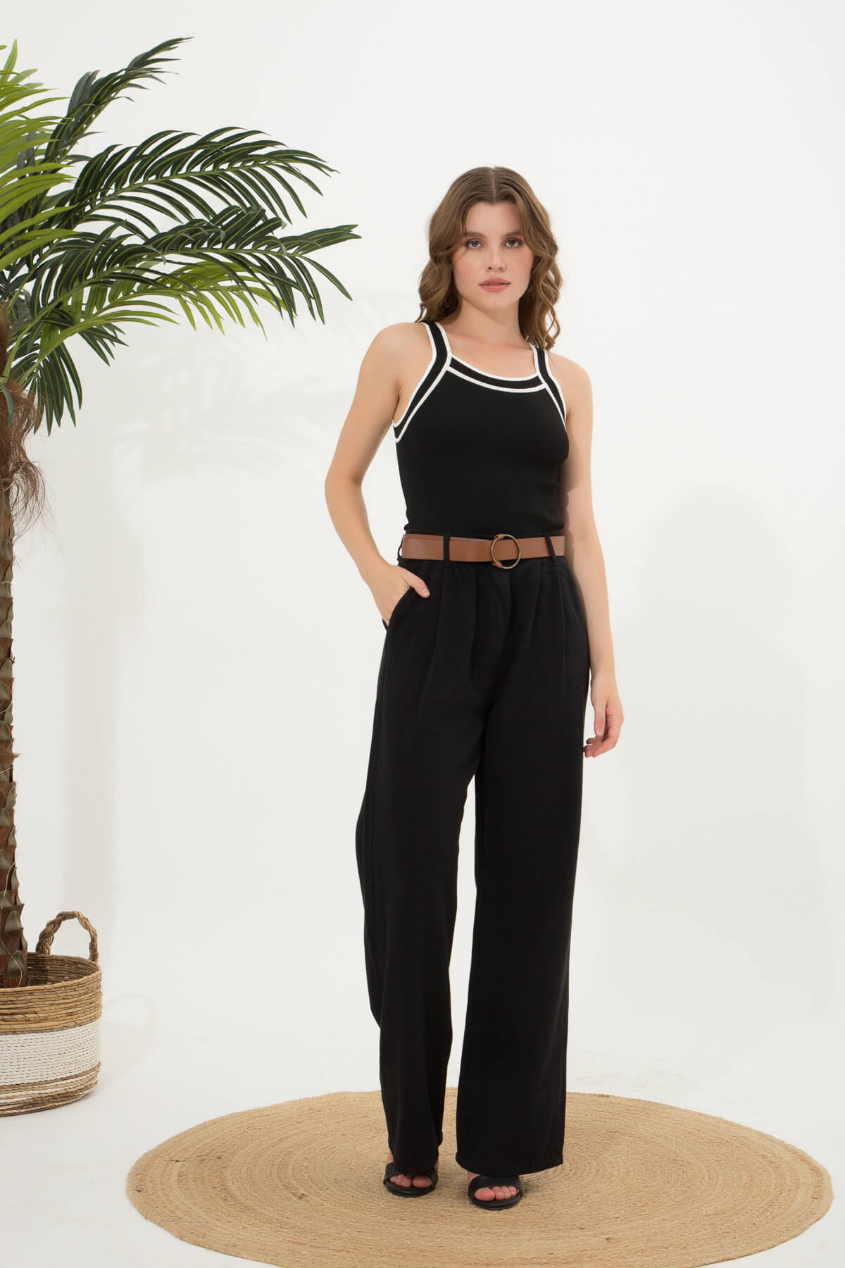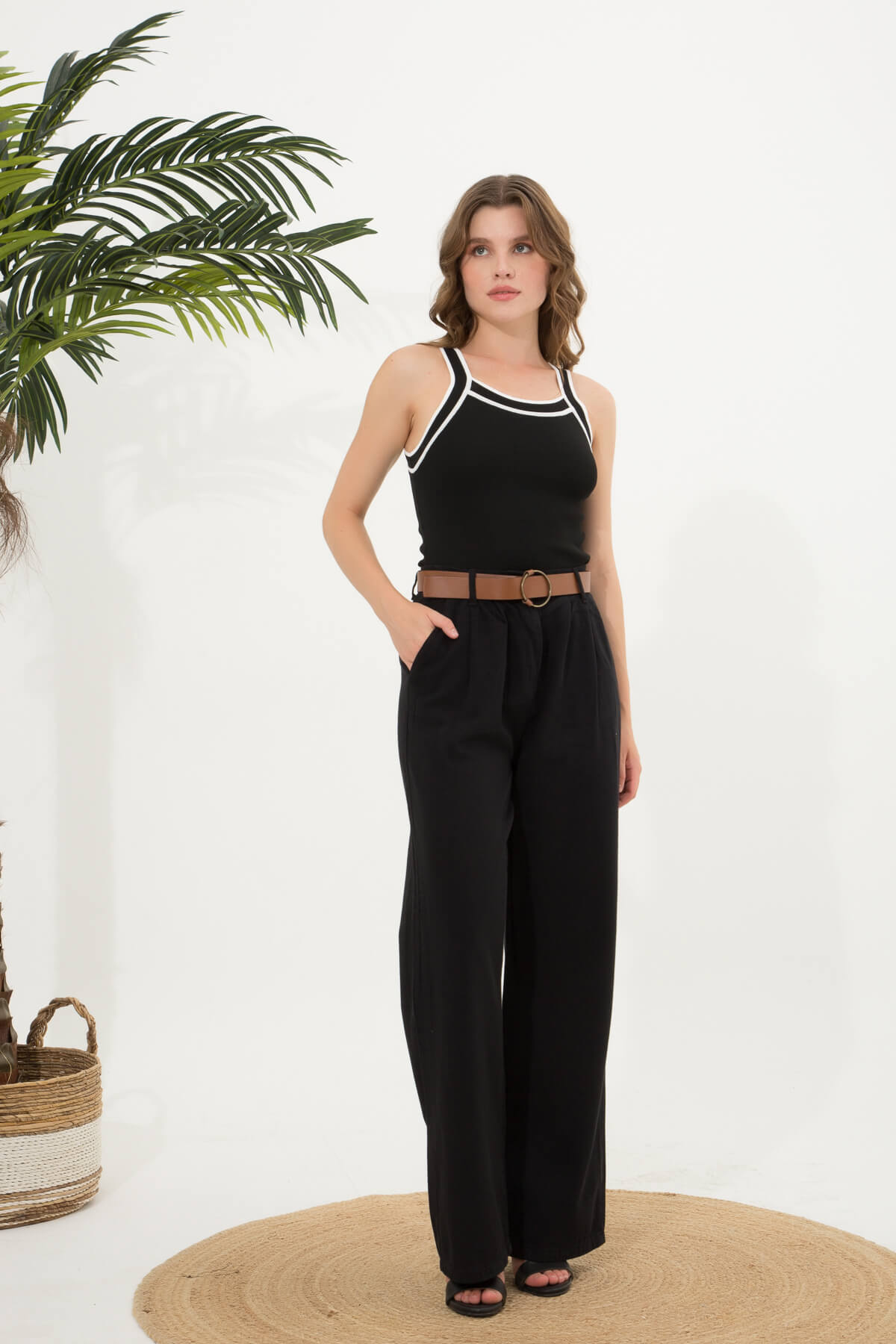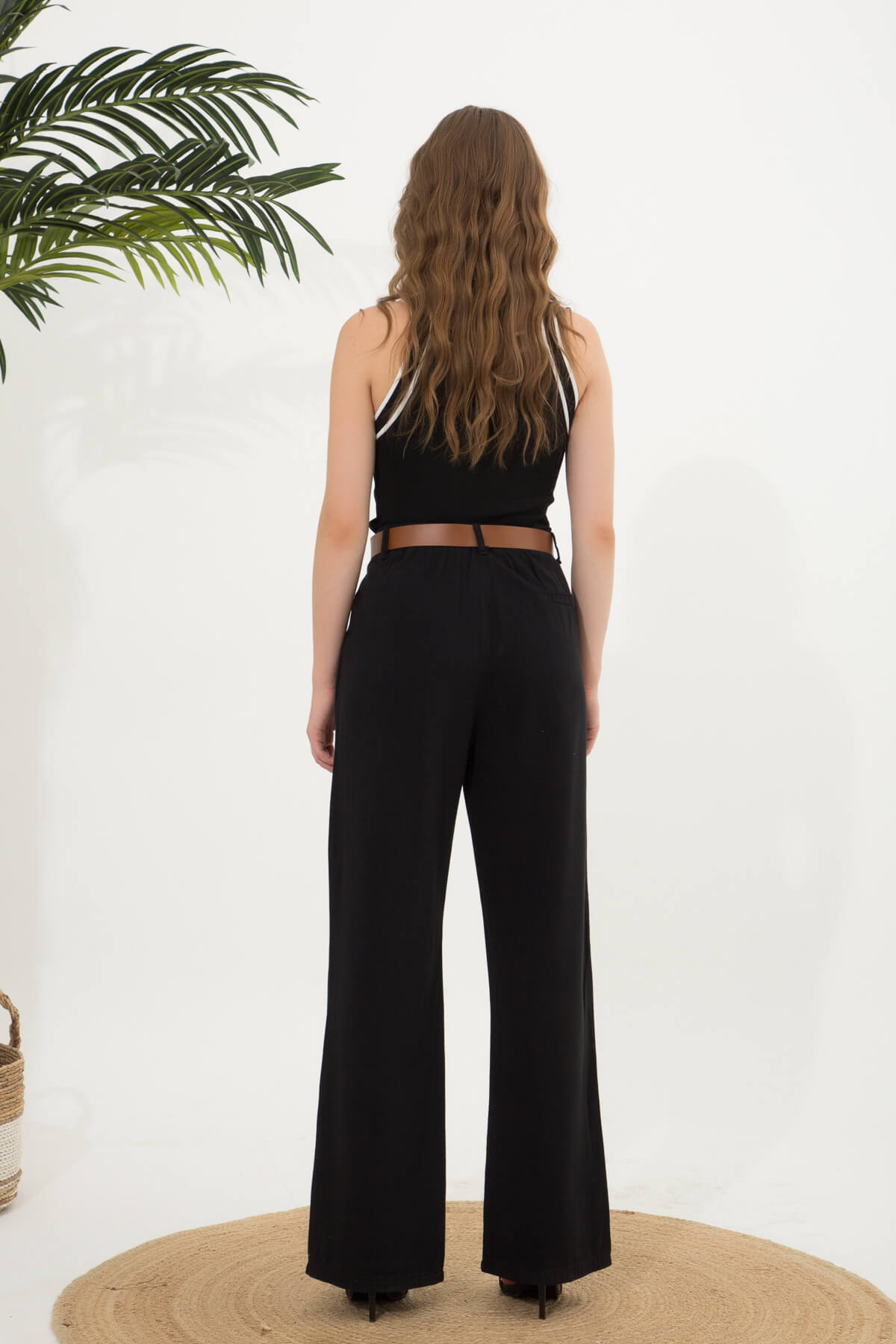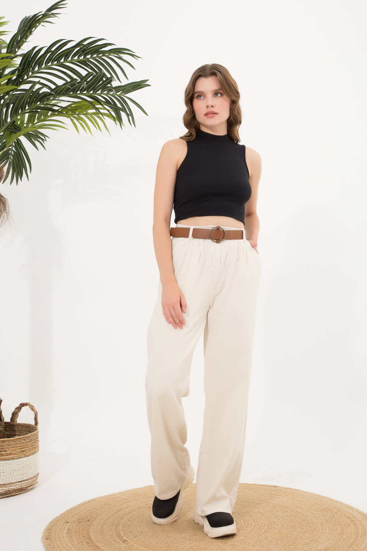 Kadın kemerli pileli palazzo pantolon, zarif ve modern bir stile sahiptir.