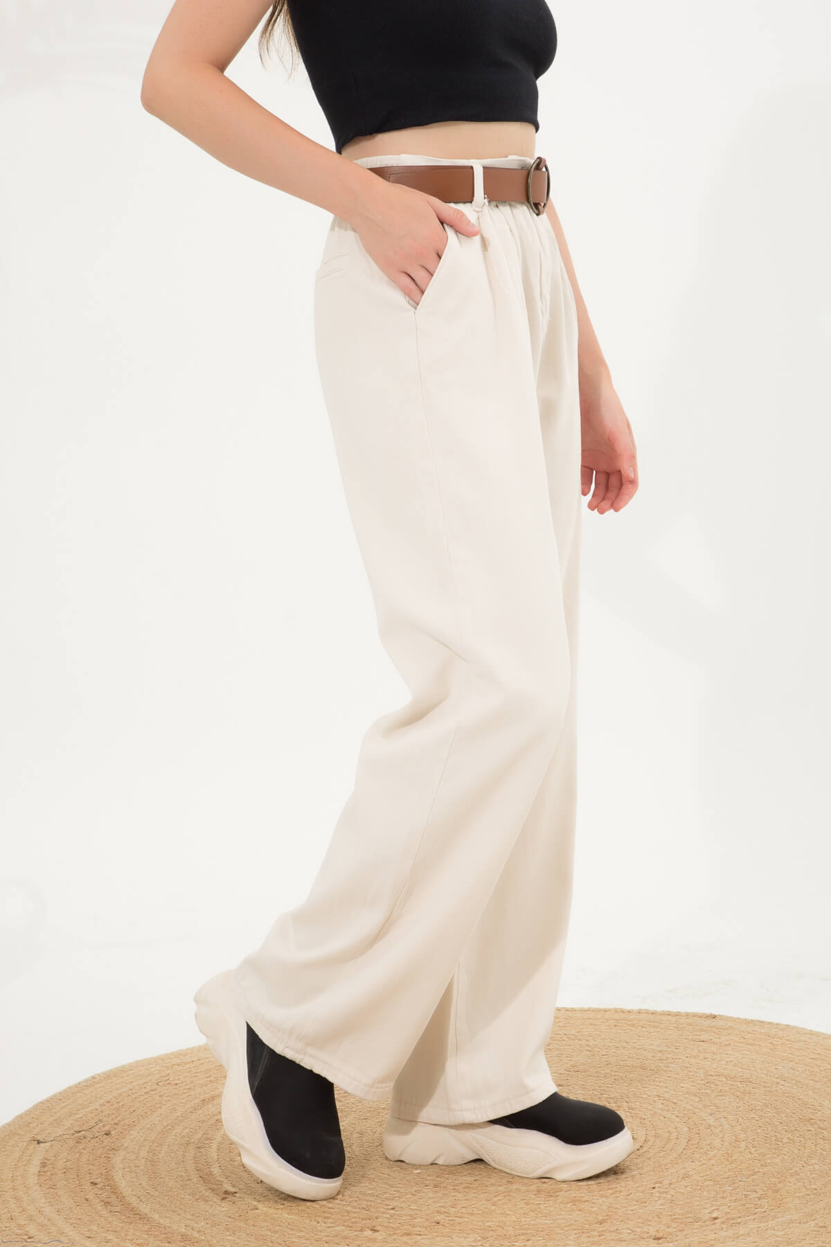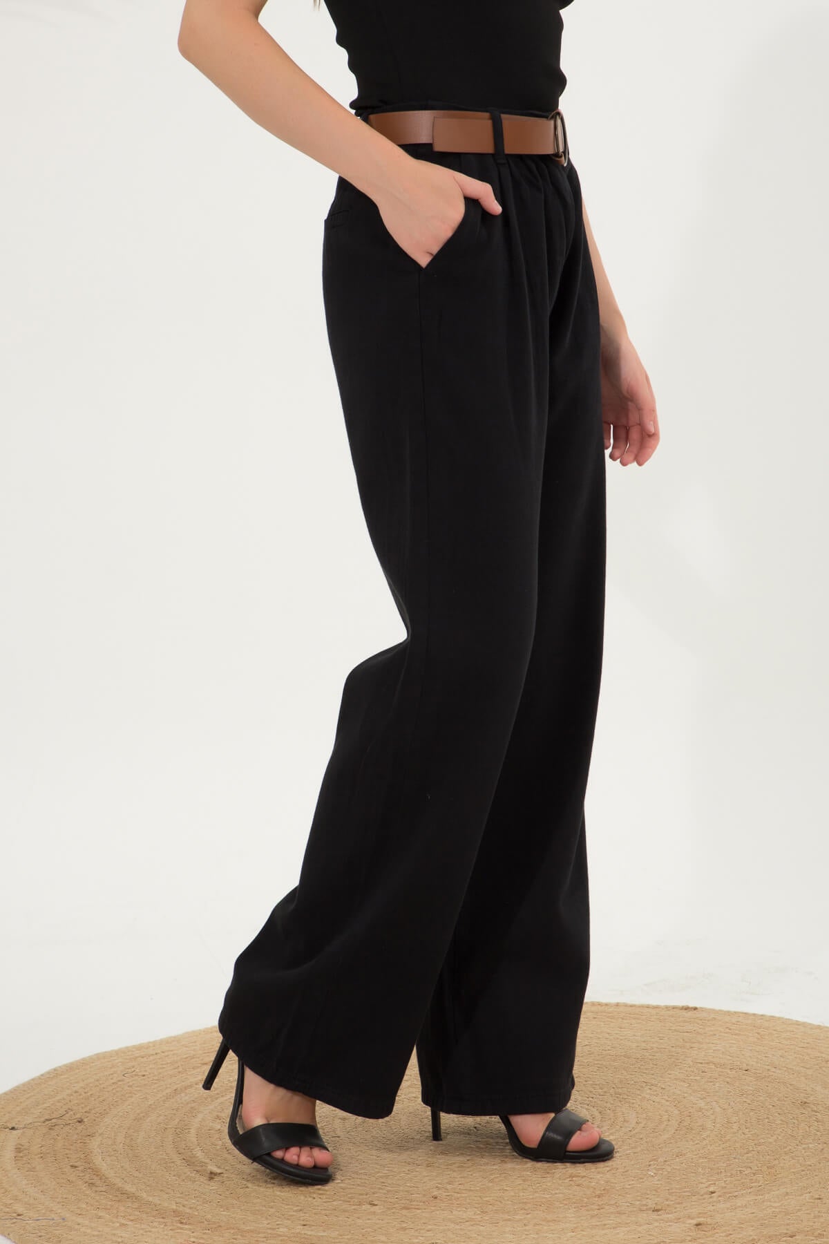 Pileli yapısı şıklık katarken, geniş paça kesimi konforlu bir hareket alanı sunar.