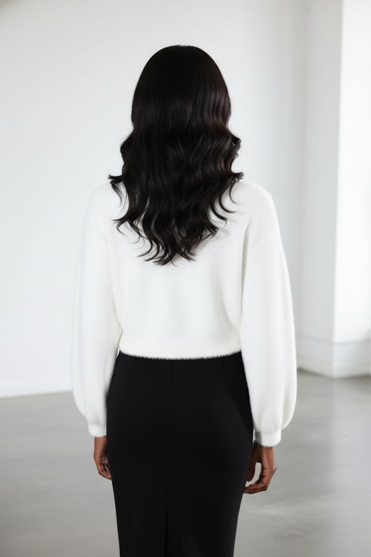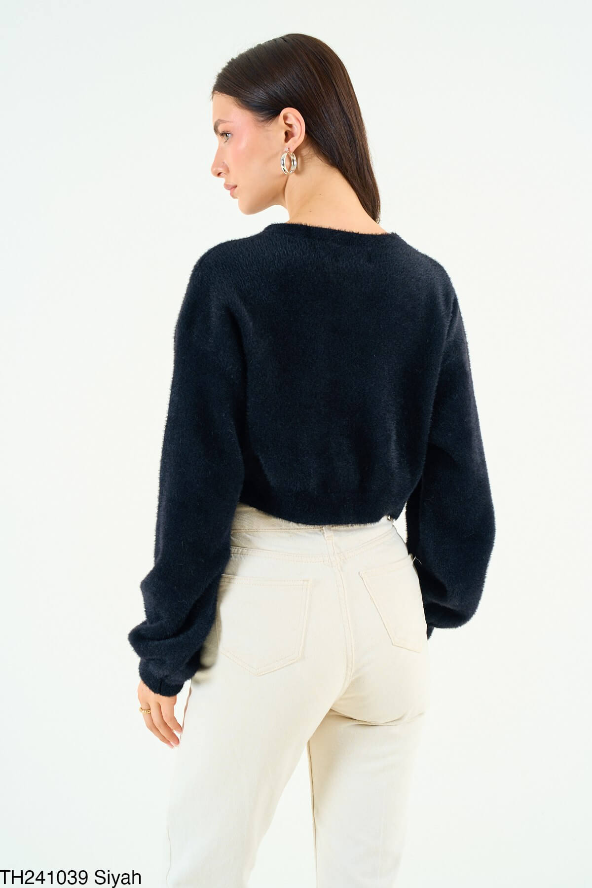 Yumoş dokusuyla son derece yumuşak ve konforlu bir his sunan bu hırka, inci ve taş detaylı düğmeleriyle zarif bir ışıltı katar.