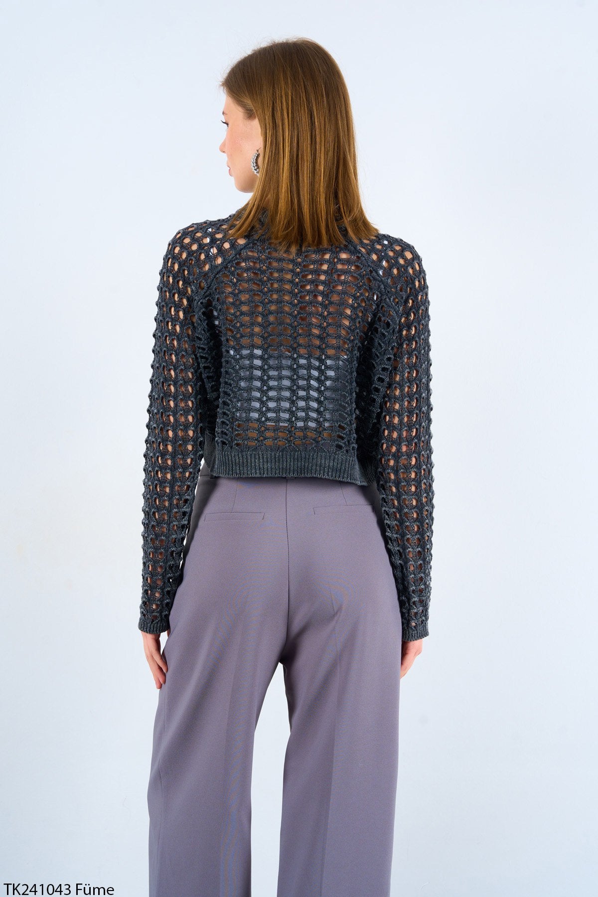 Ajurlu örgü detayı modern ve feminen bir görünüm kazandırır.