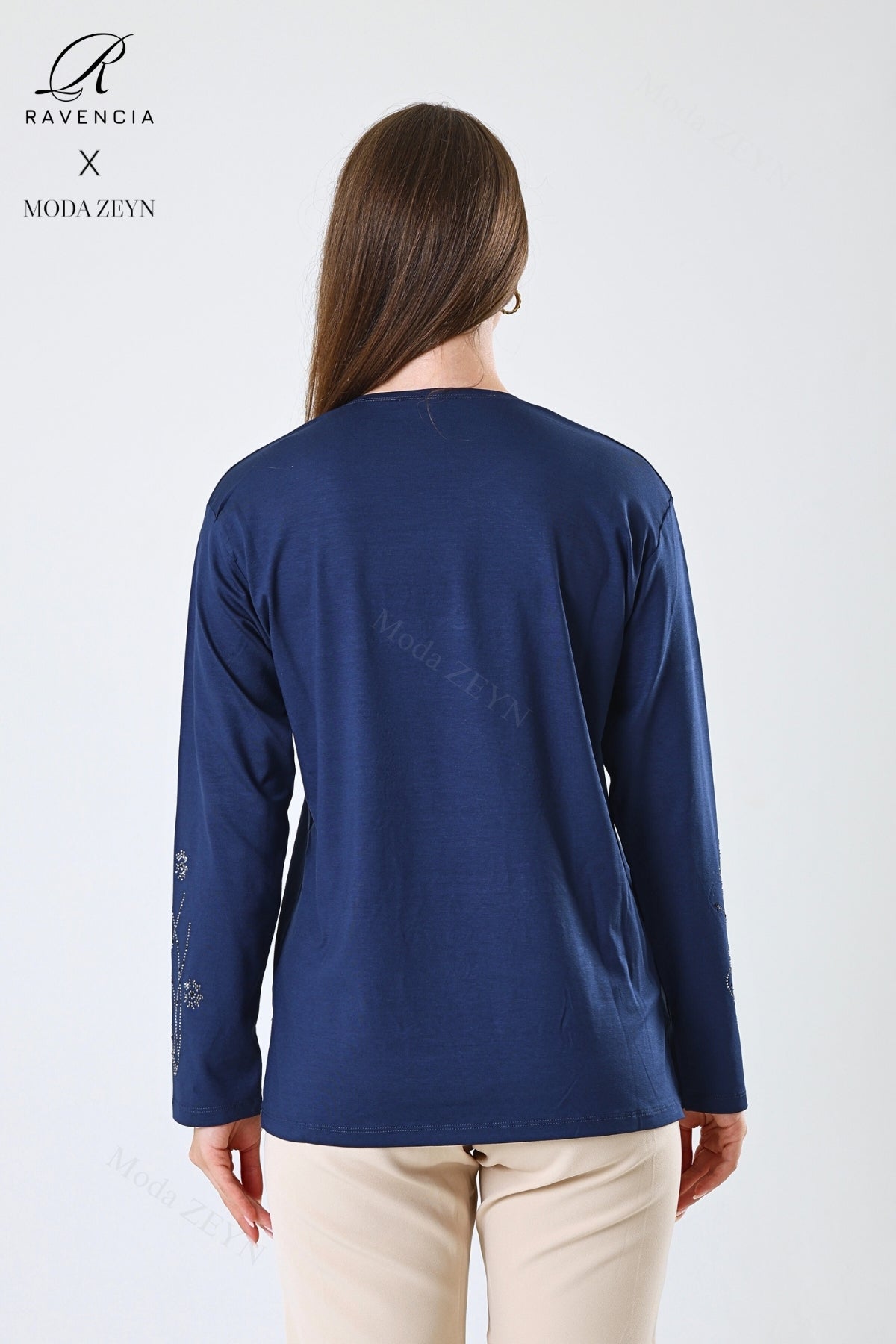 Kadın Orta Yaş Ve Üzeri Viskon Yeni Kaplama Desen Taşlı Işlemeli Likralı Zümrüt Anne Penye Bluz