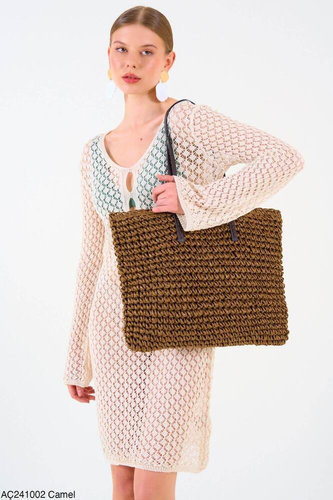 Kadın Premium Kalite Hasır Örme Astarlı Canta