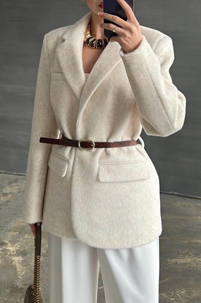 Kadın Premium Kalite Kemerli Peluş Blazer Ceket
