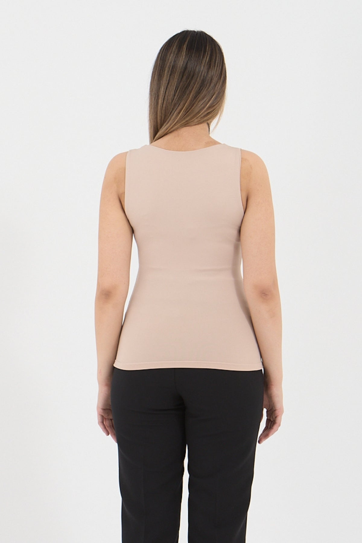 Kadın premium kalite kalın askılı havuz yaka bluz, sade ve zarif bir stile sahiptir.