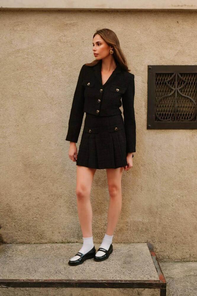 Mini boy kesimiyle modern bir duruş sunarken, feminen bir siluet oluşturur.