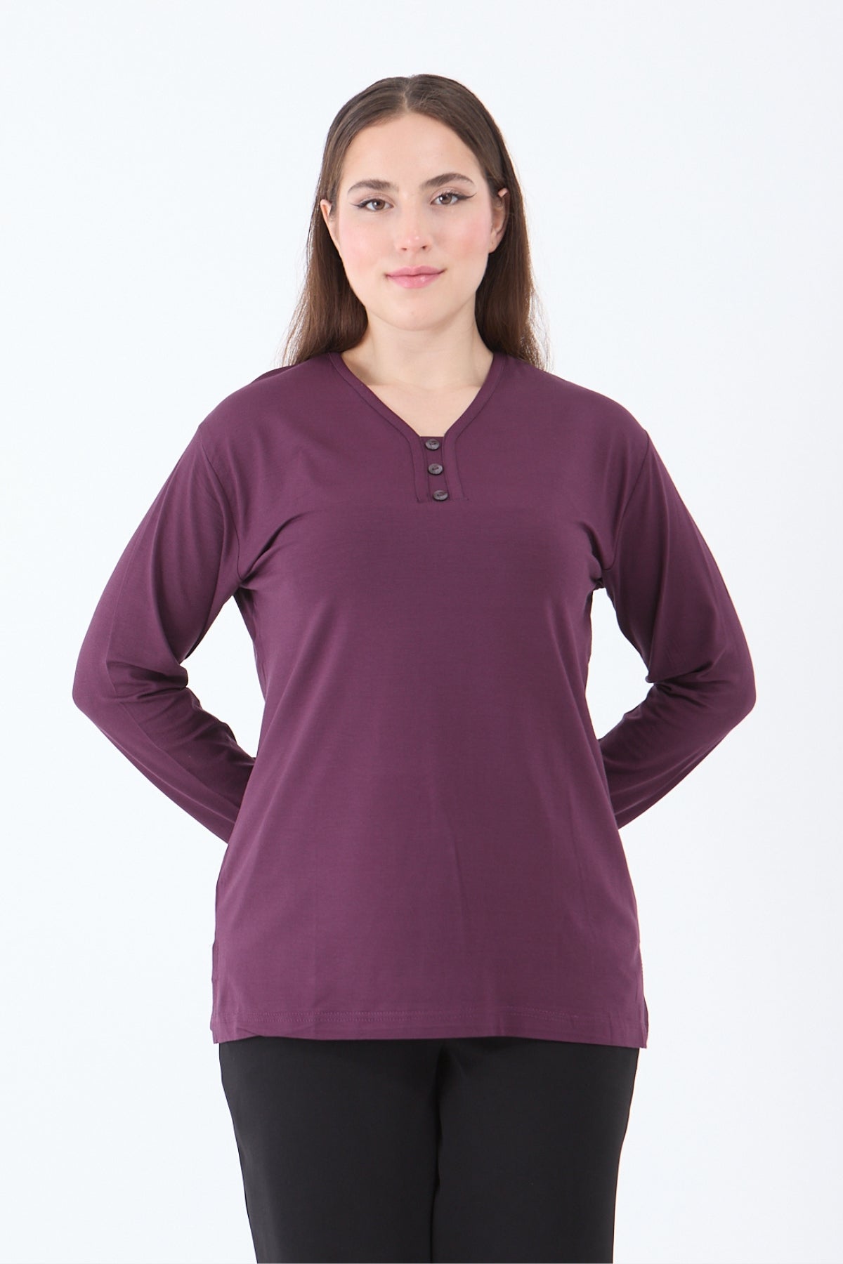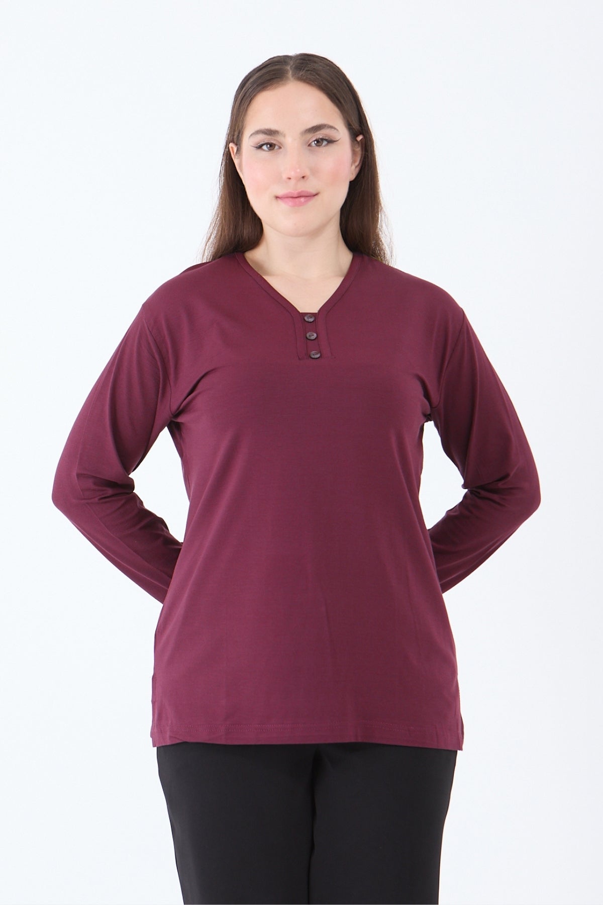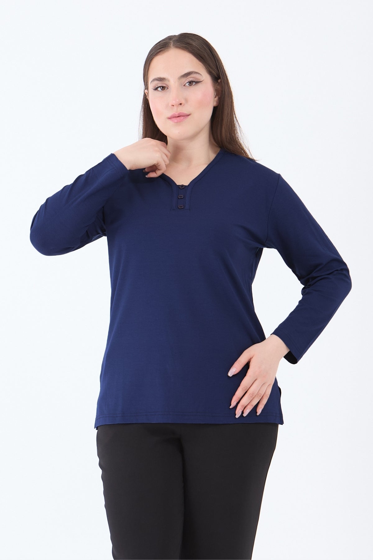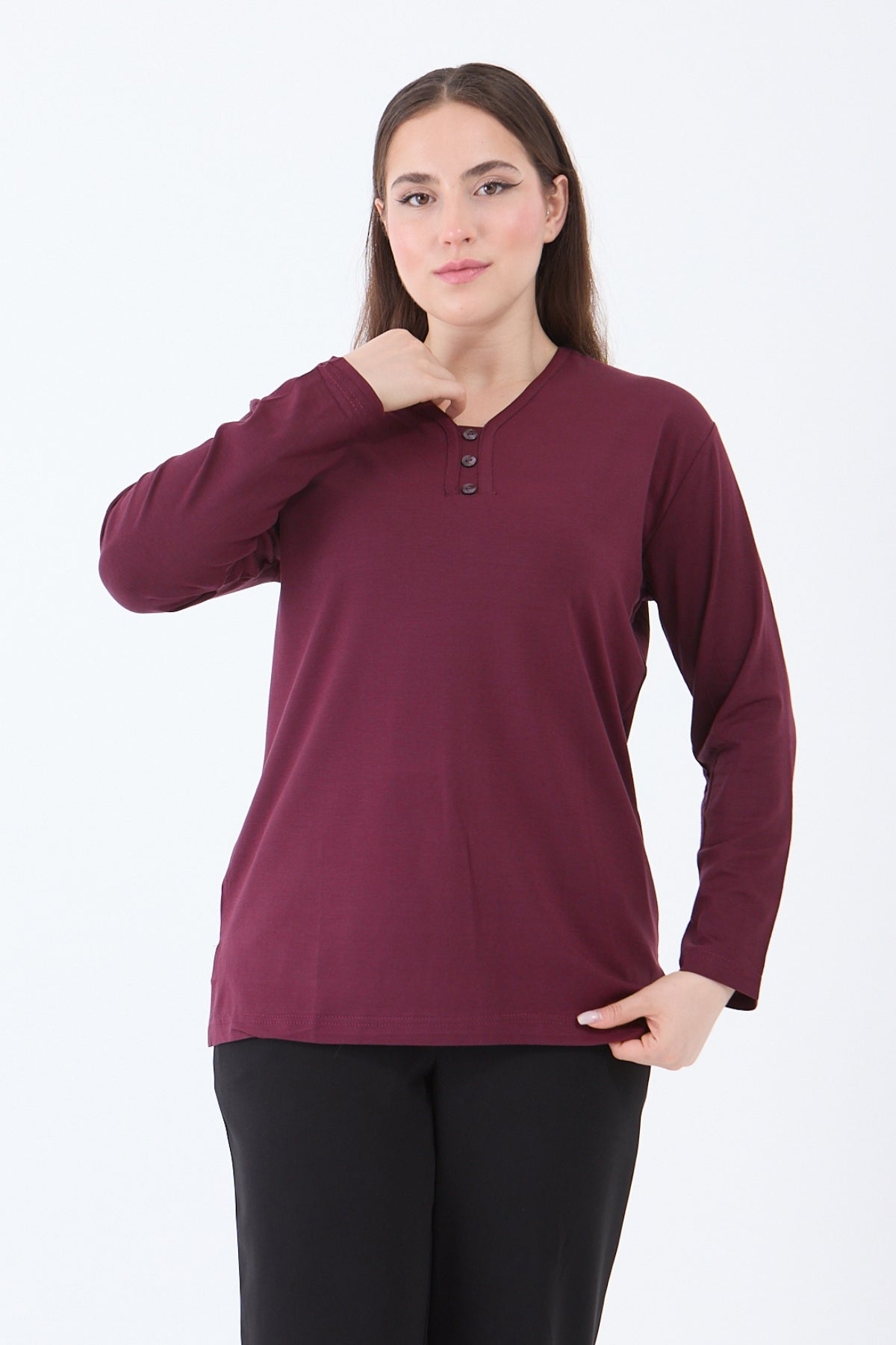 Kadın V Yaka Likralı Viskon Anne Penye Bluz