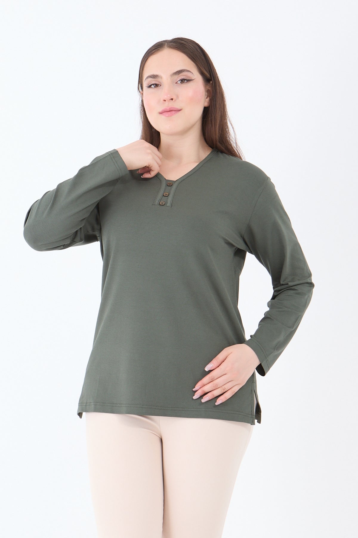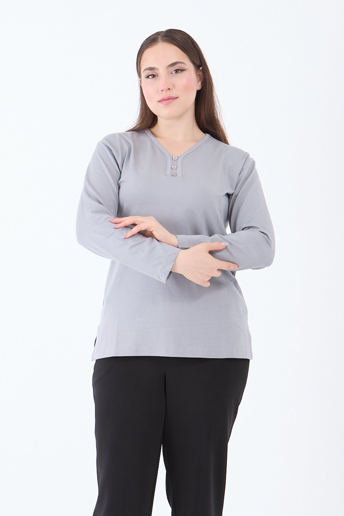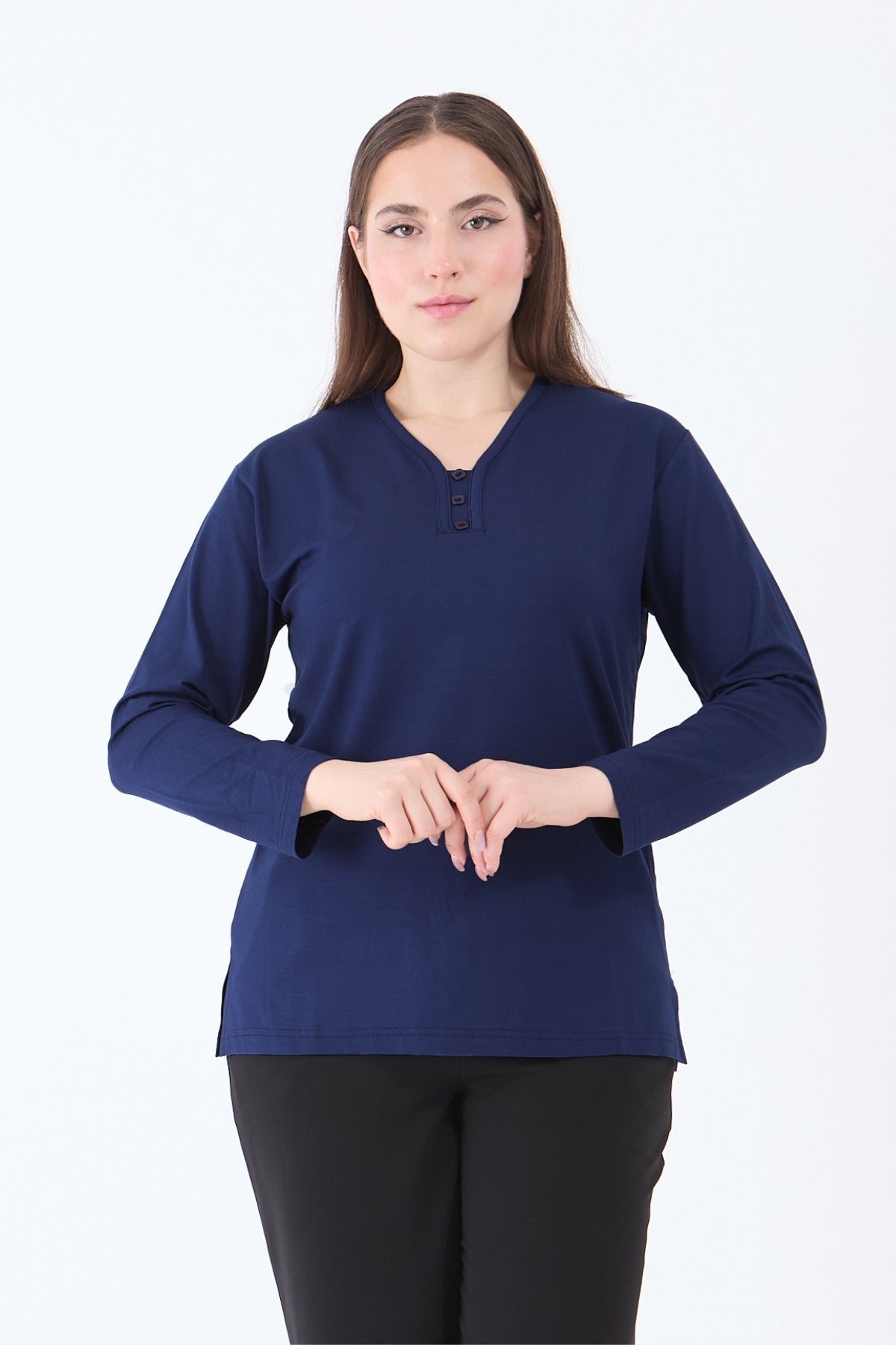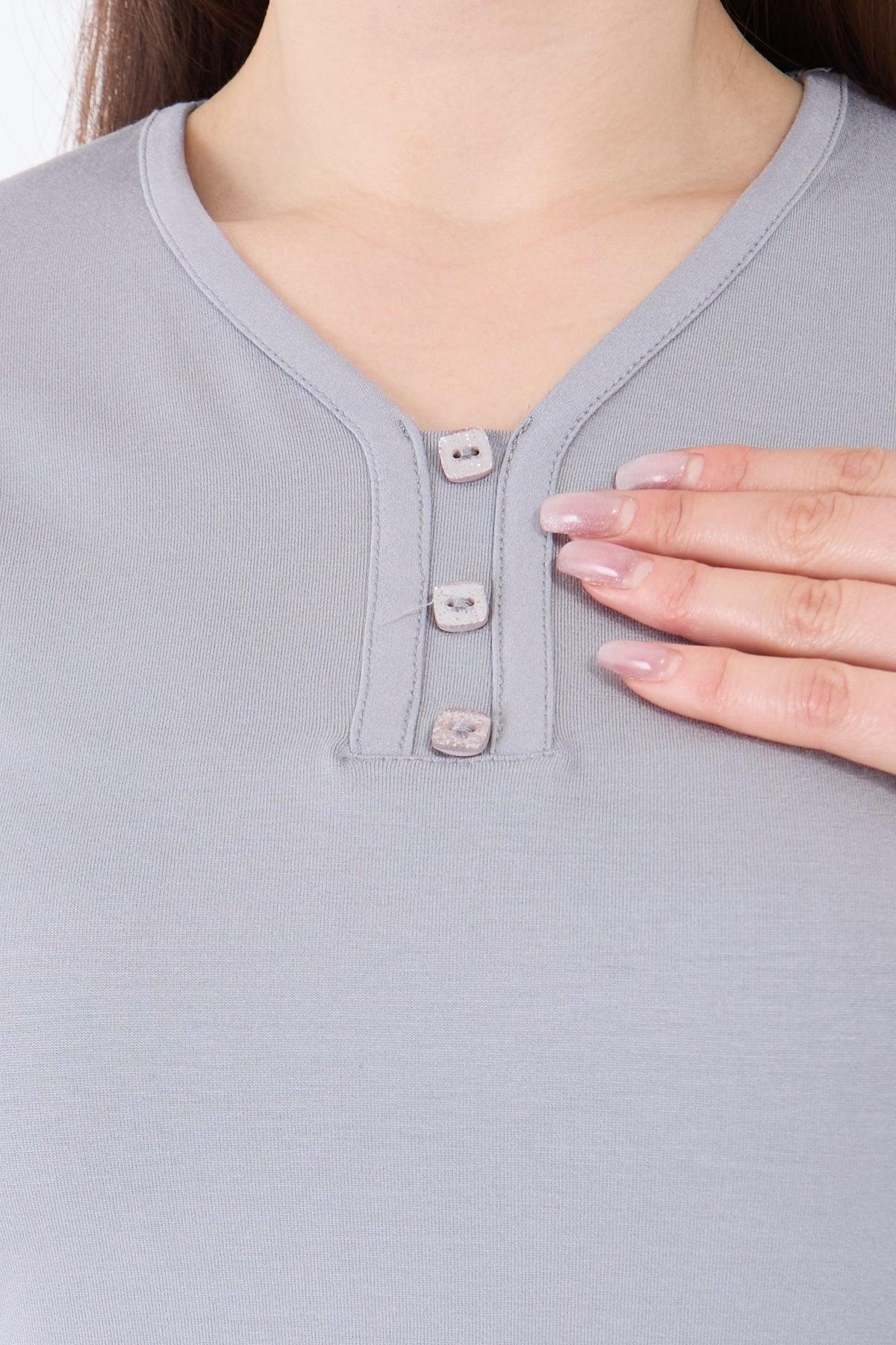 Kadın V Yaka Likralı Viskon Anne Penye Bluz