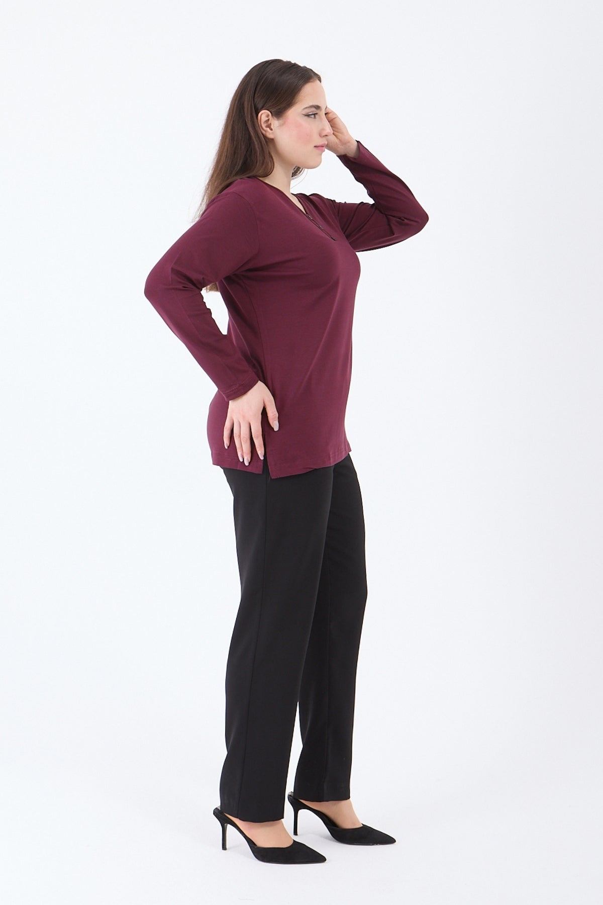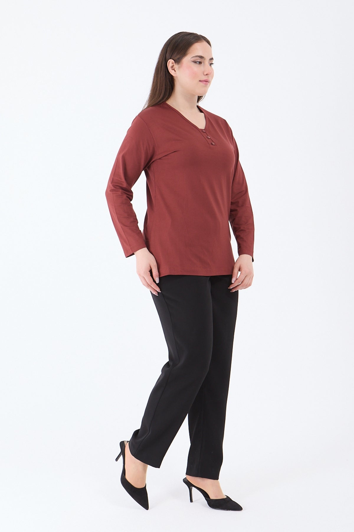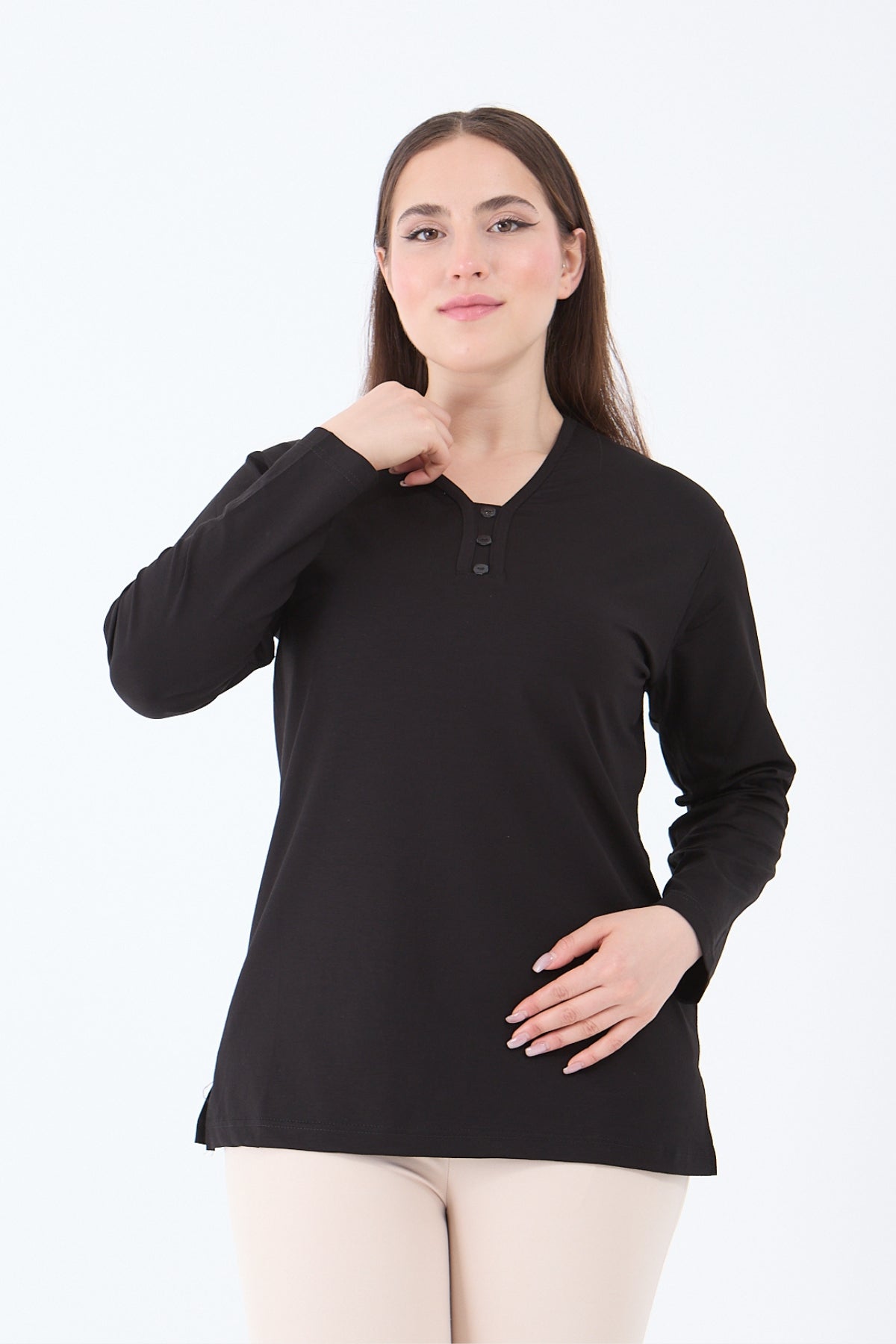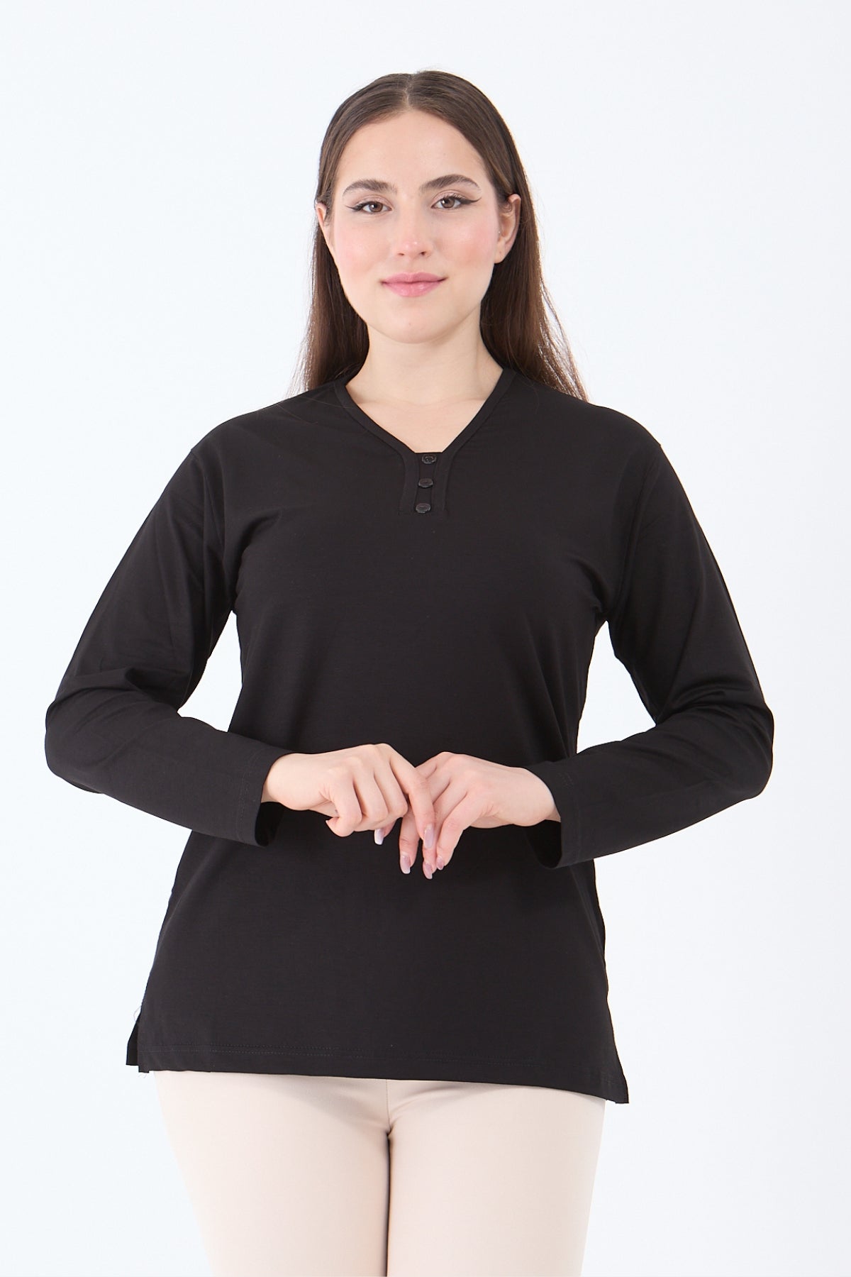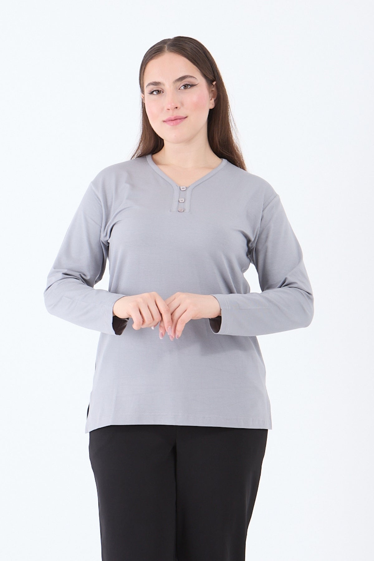 Kadın V Yaka Likralı Viskon Anne Penye Bluz