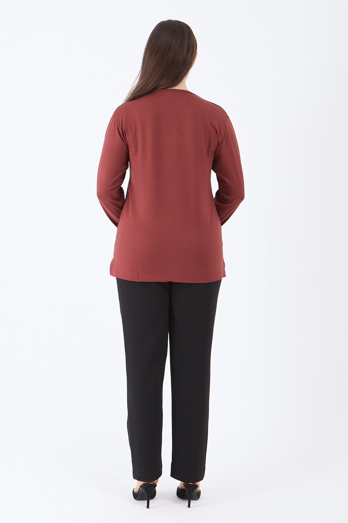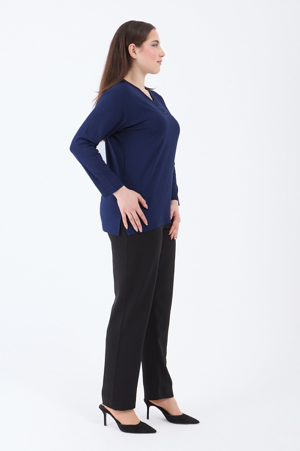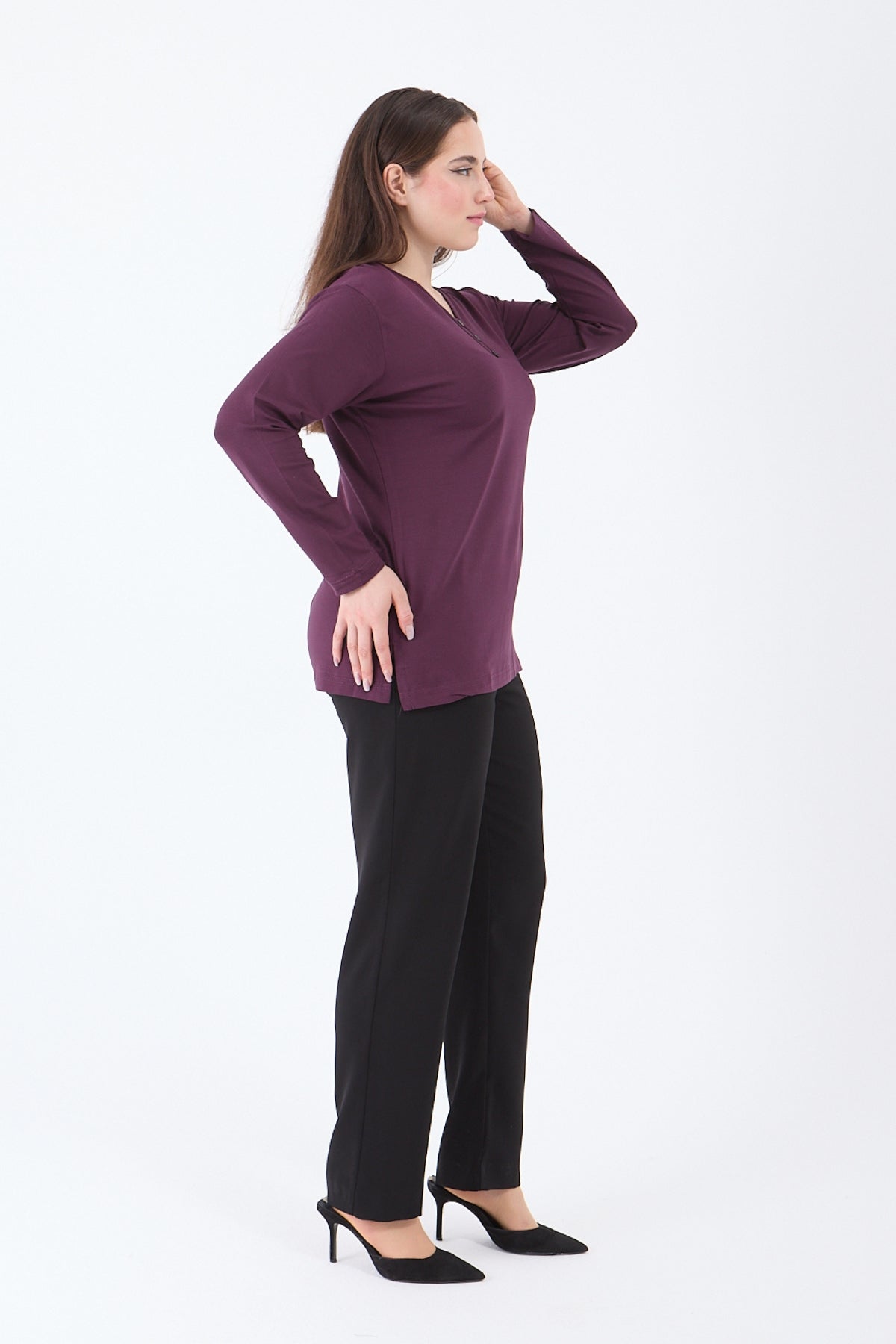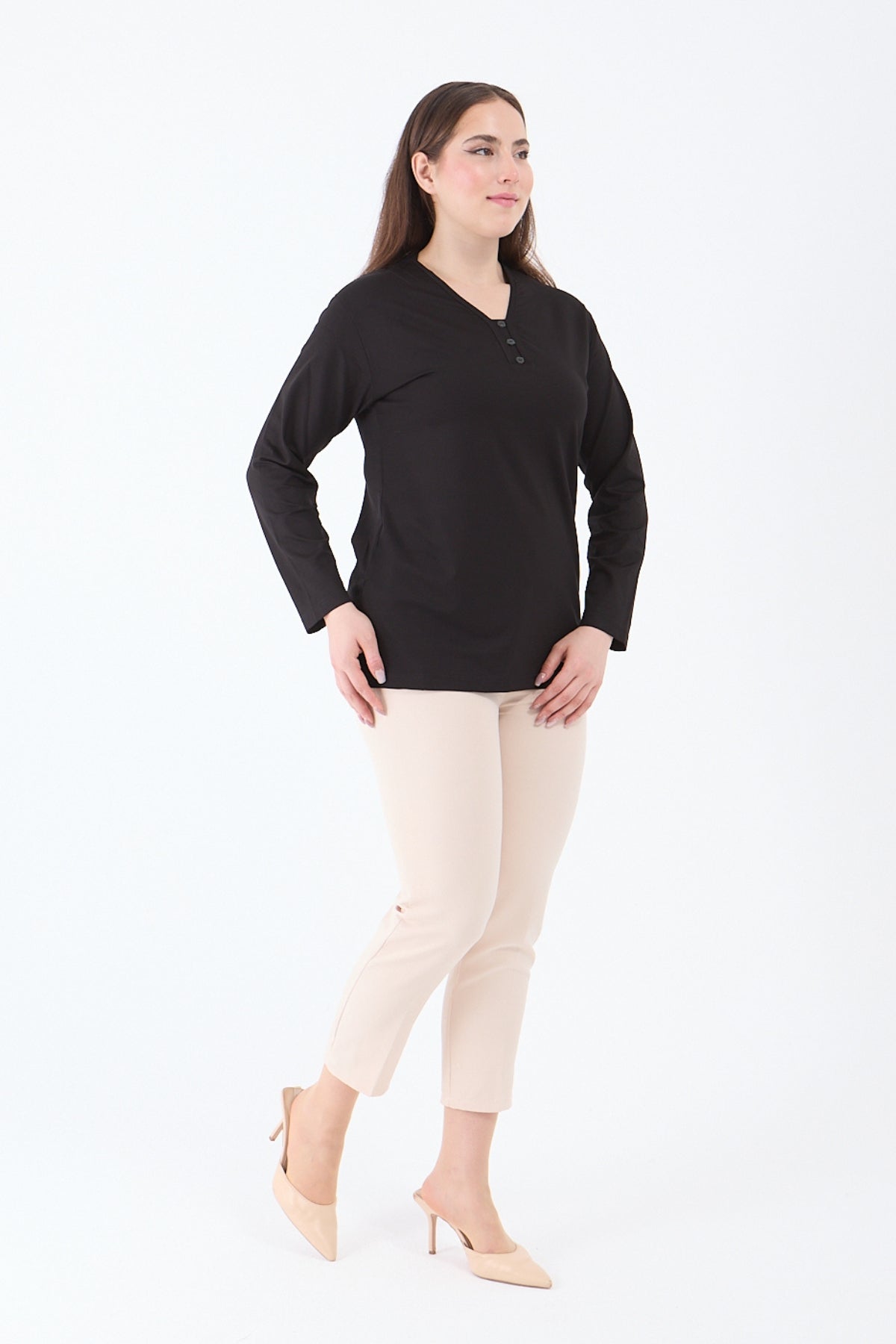 Kadın V Yaka Likralı Viskon Anne Penye Bluz