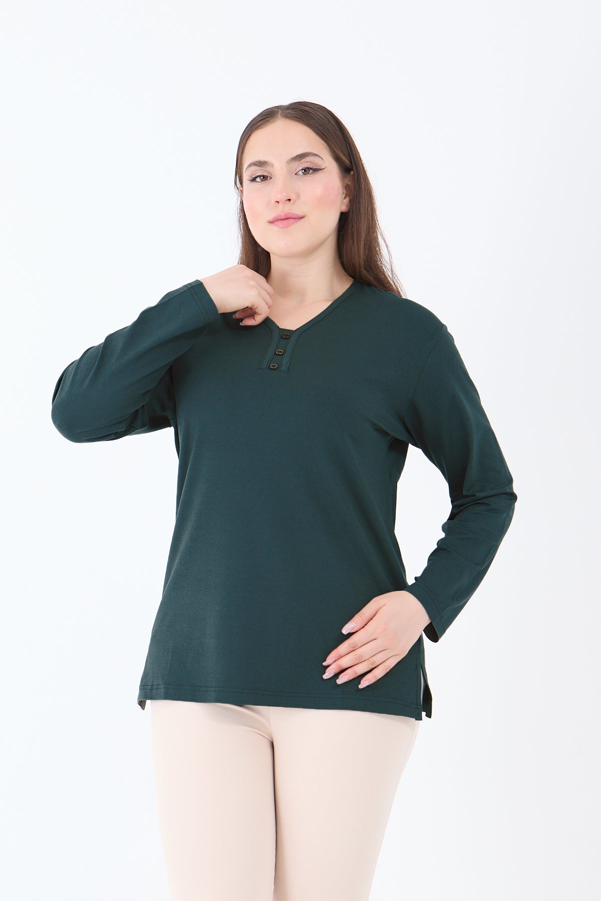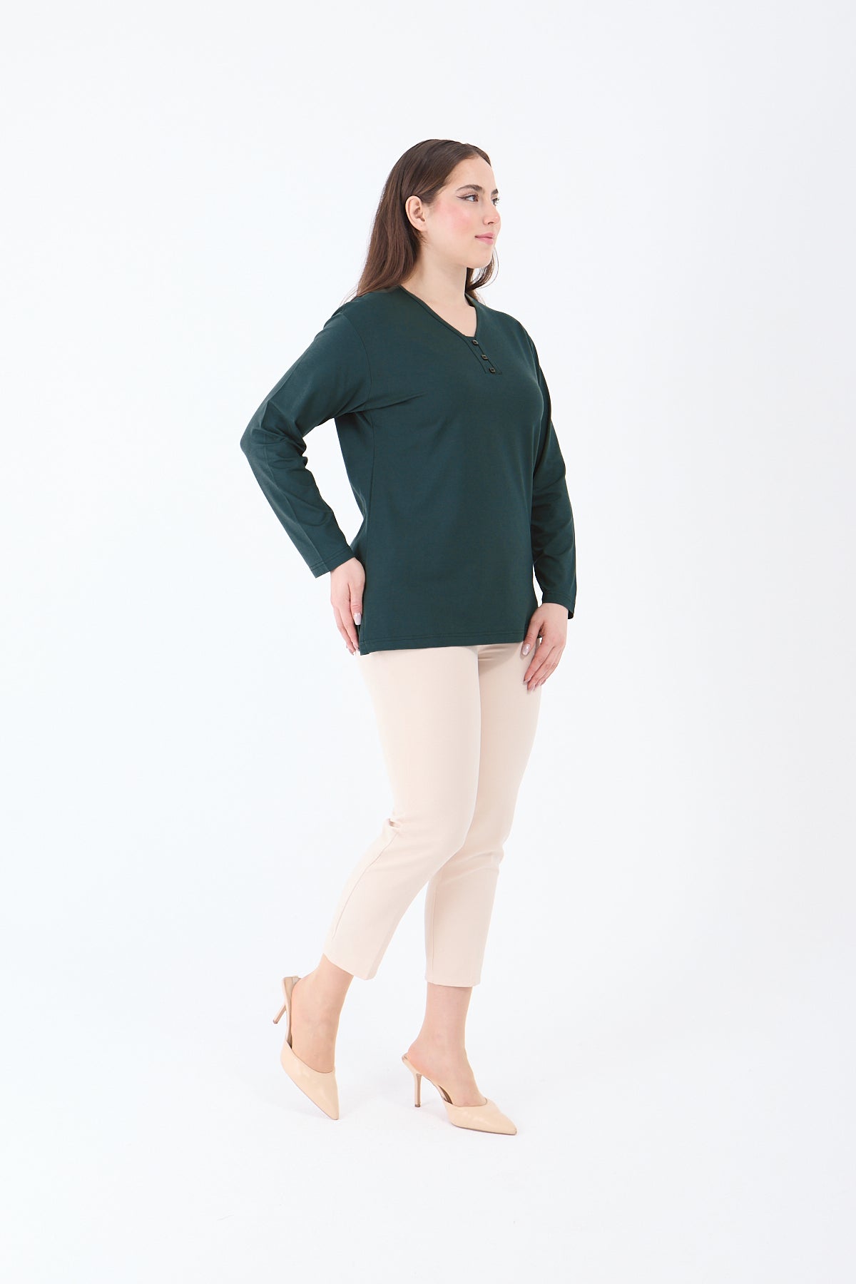 Kadın Orta Yaş Ve Üzeri V Yaka Likralı Zümrüt Anne Penye Bluz