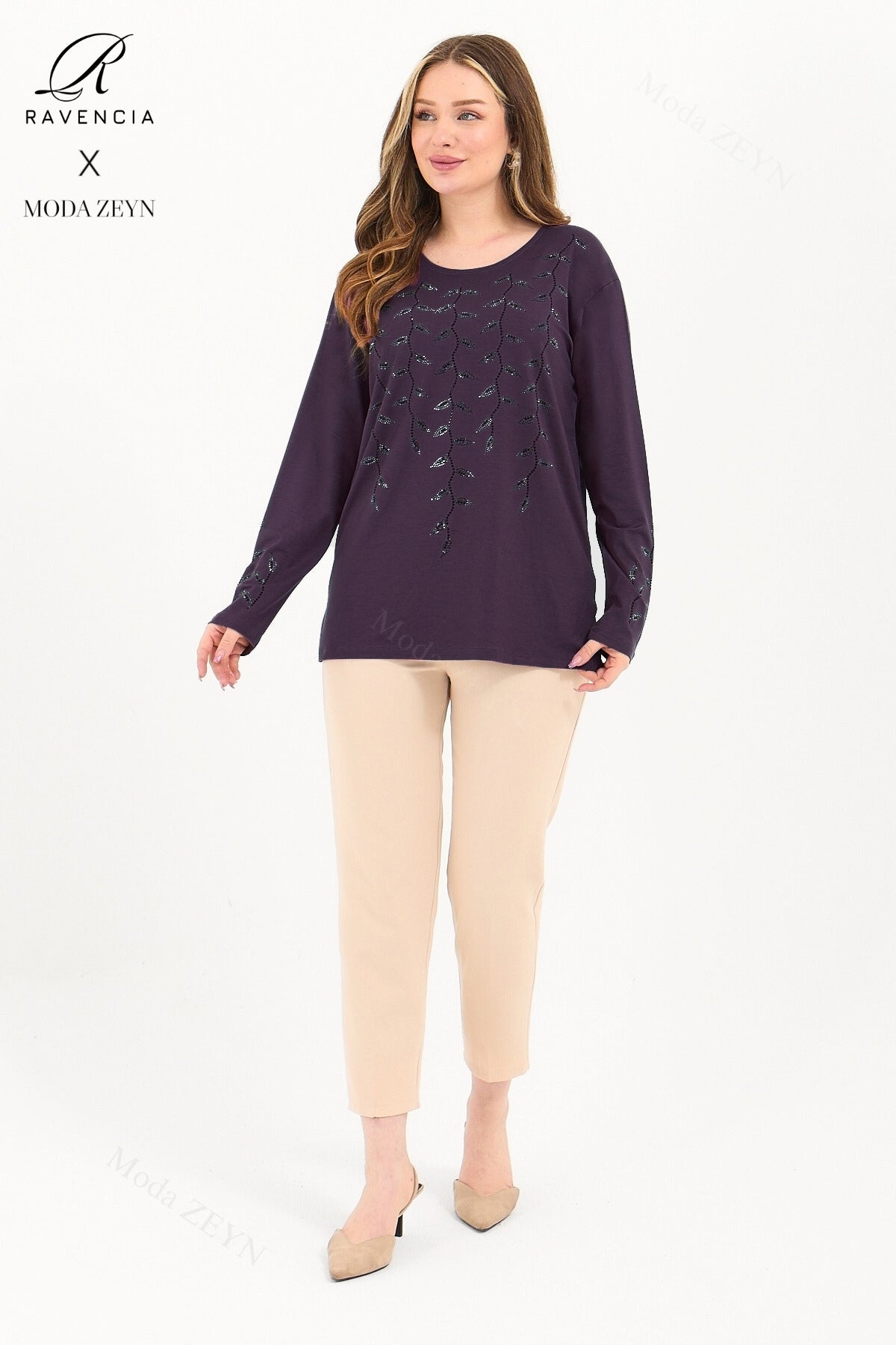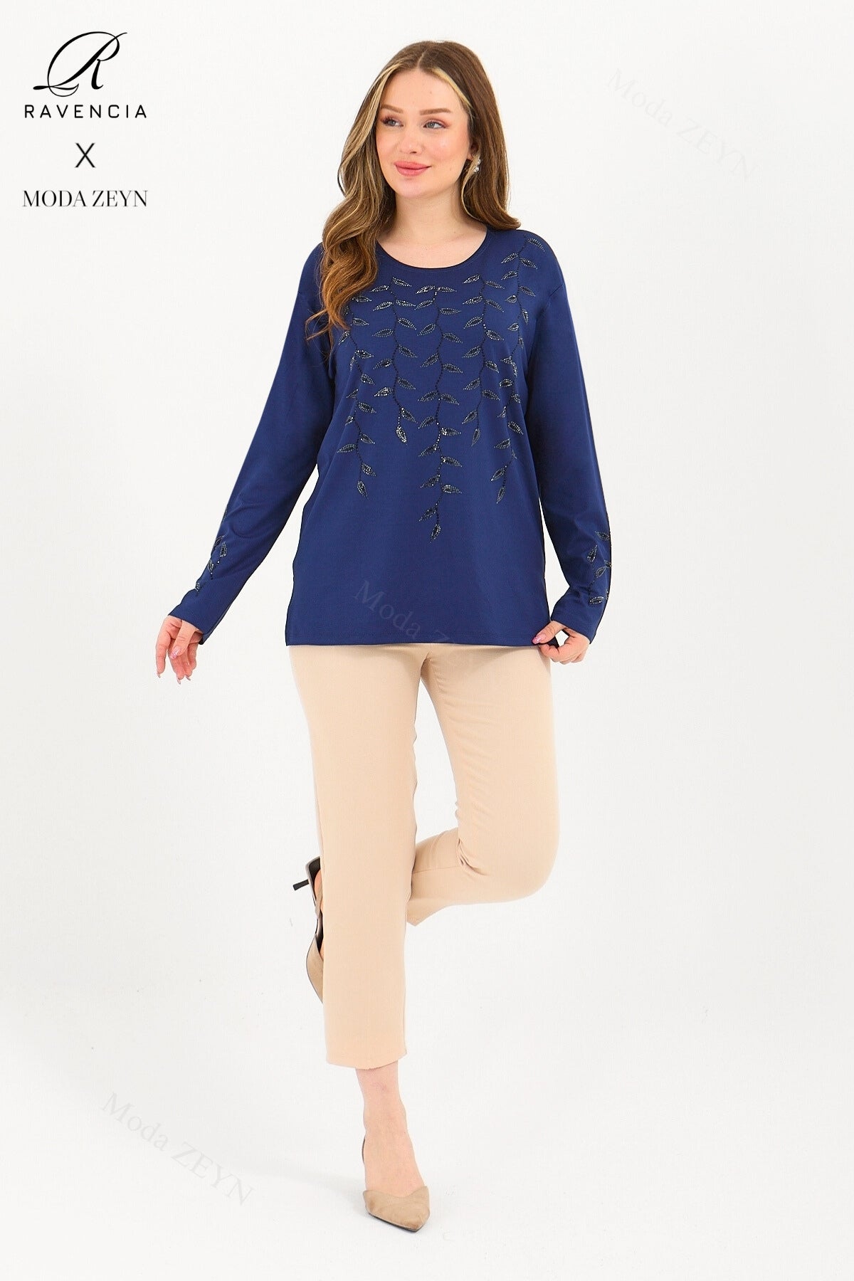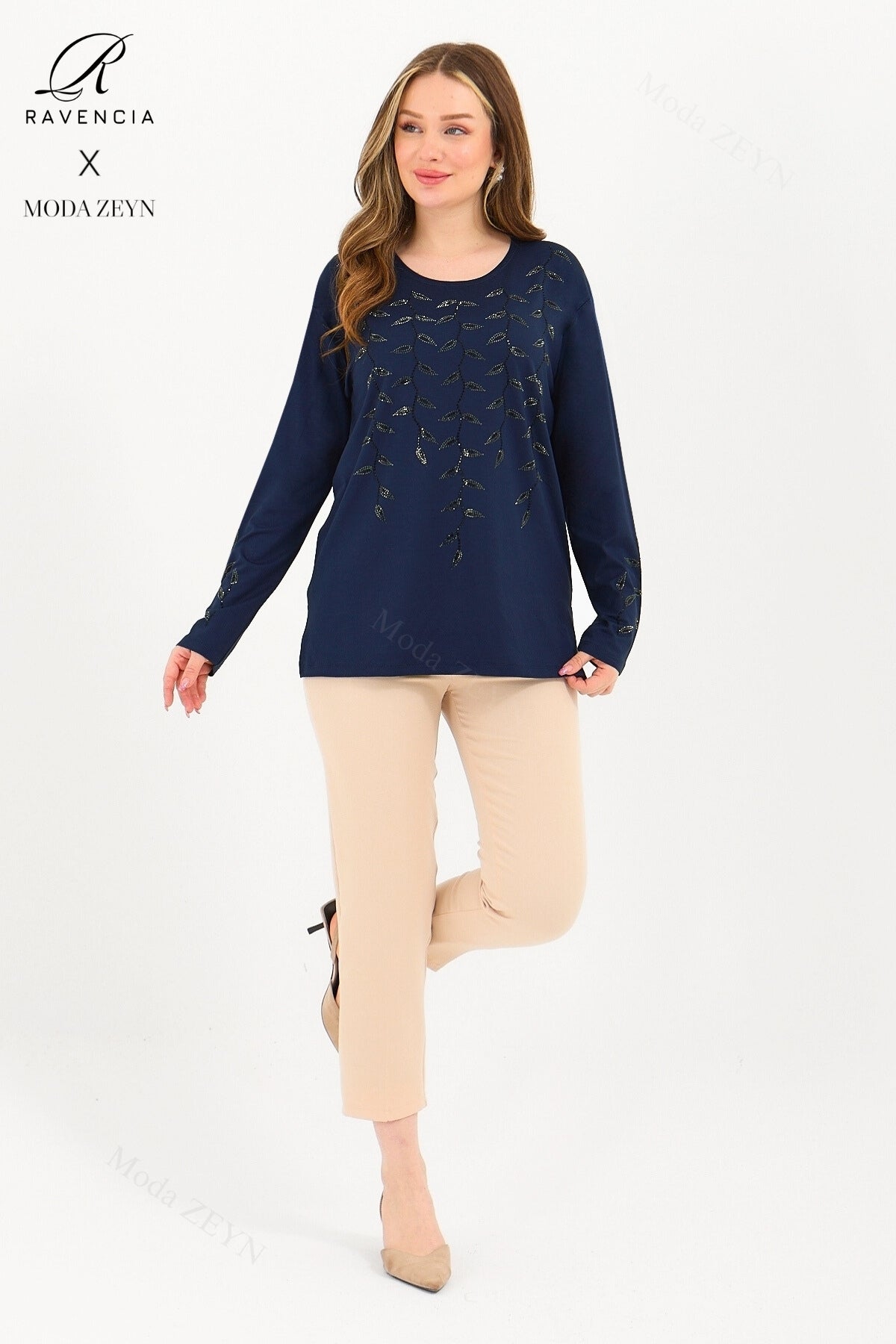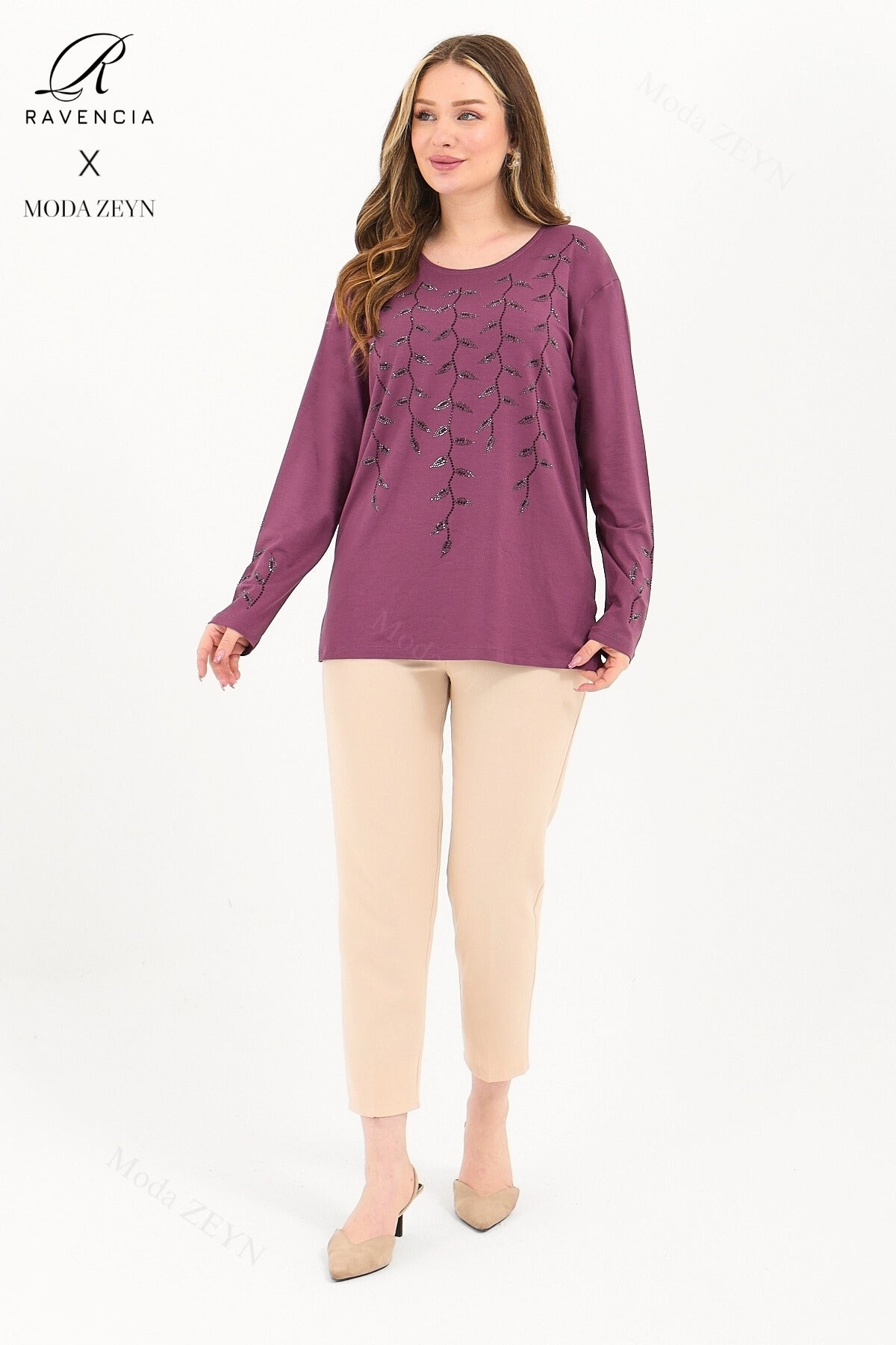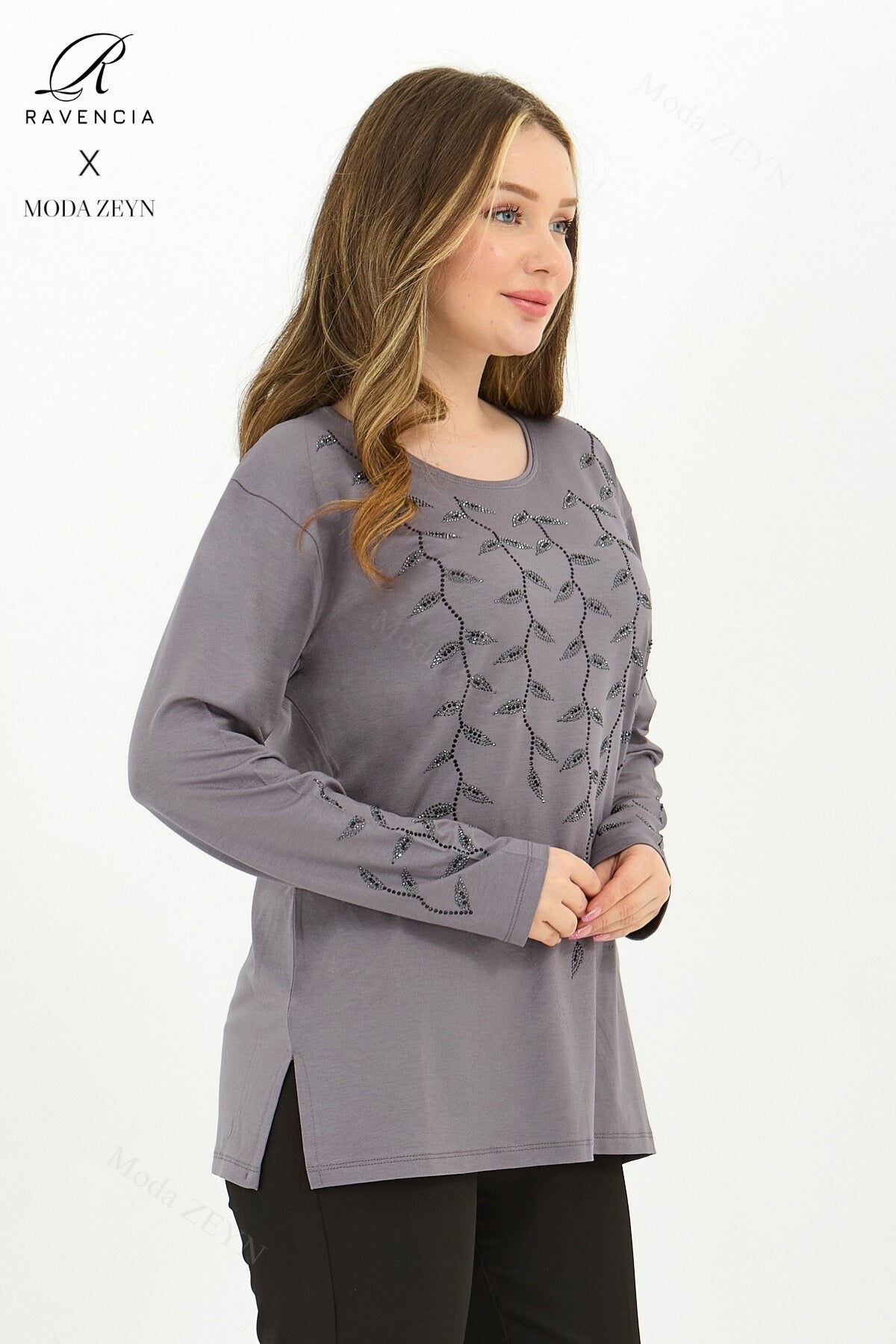Gardırobunuzun en değerli parçası olmaya aday bu özel tasarım bluz, yüksek kaliteli viskon penye kumaşı ve göz alıcı taş işlemeleriyle şıklığı zahmetsizce yakalamanızı sağlar.