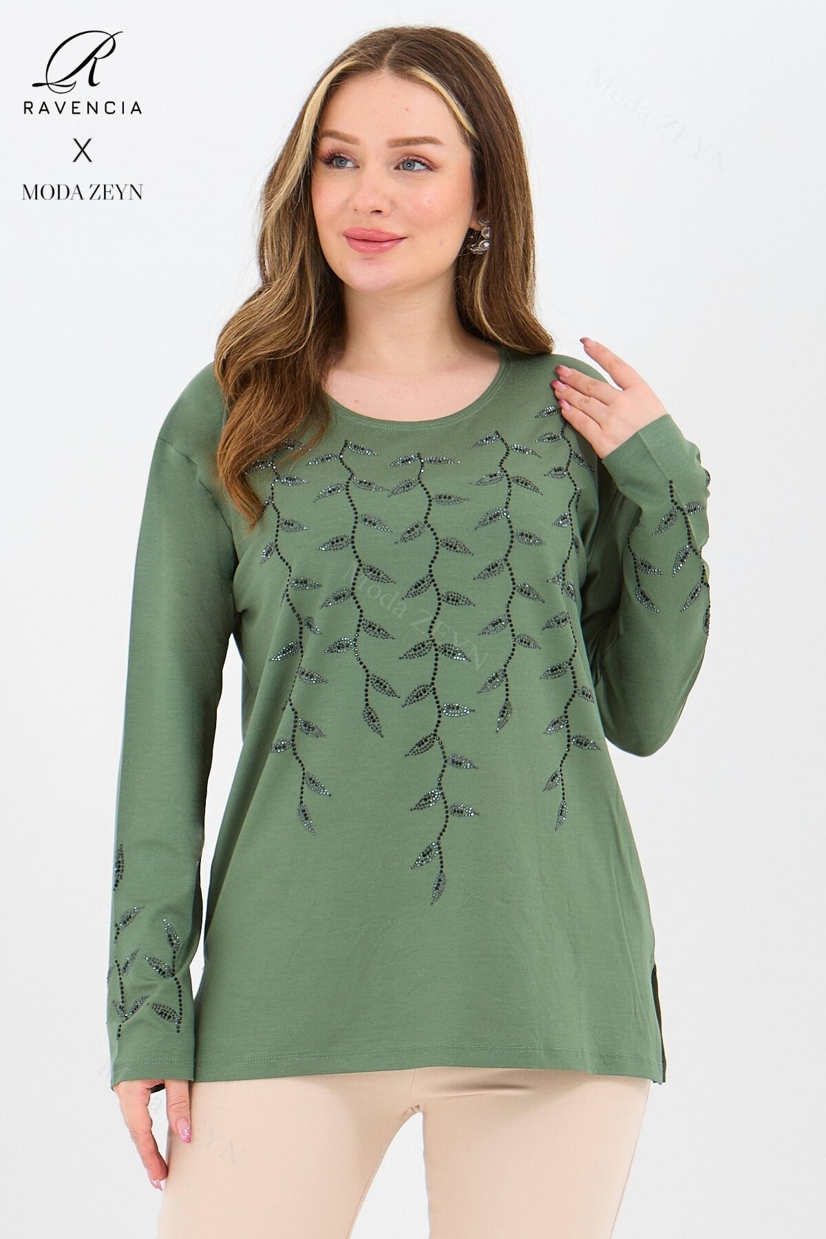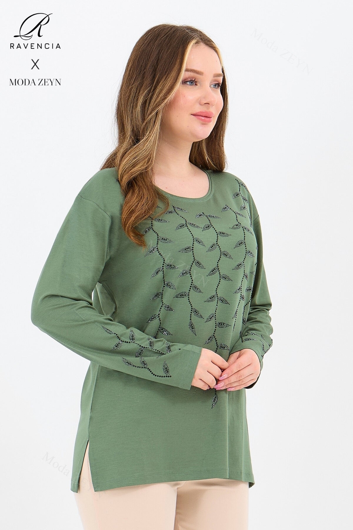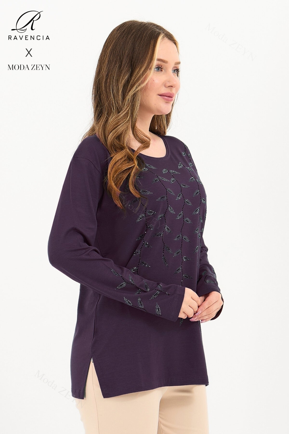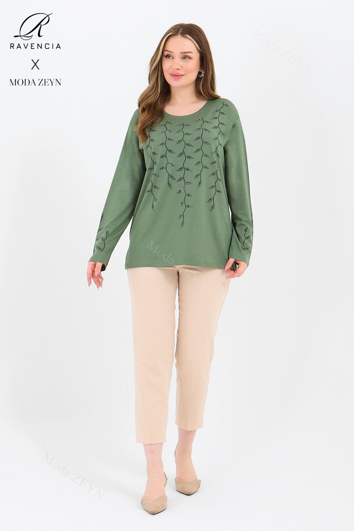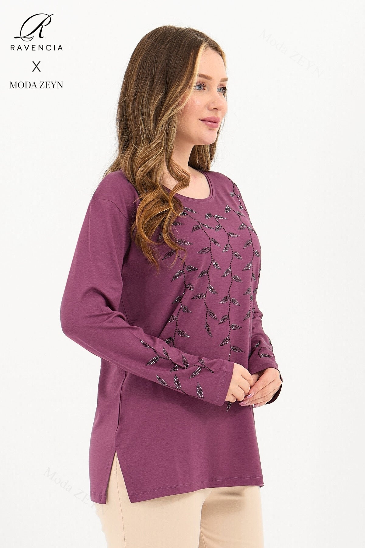 Gardırobunuzun en değerli parçası olmaya aday bu özel tasarım bluz, yüksek kaliteli viskon penye kumaşı ve göz alıcı taş işlemeleriyle şıklığı zahmetsizce yakalamanızı sağlar.