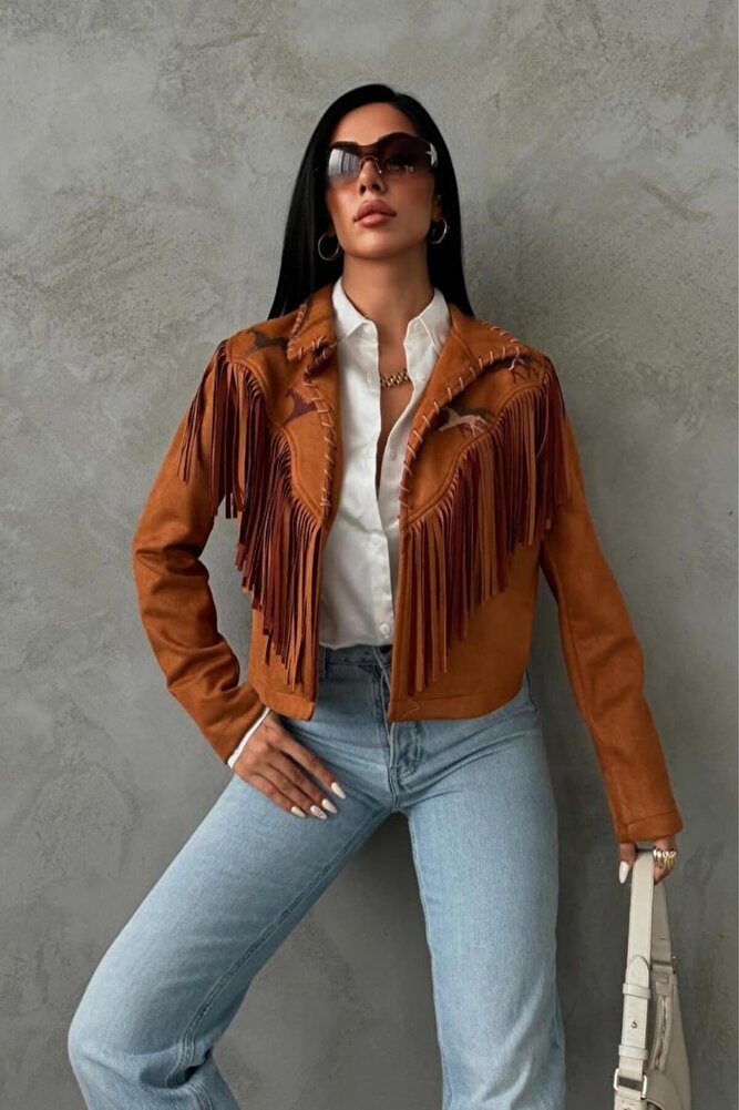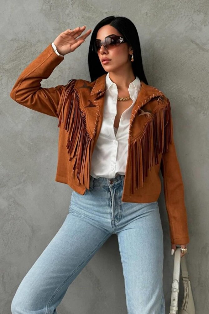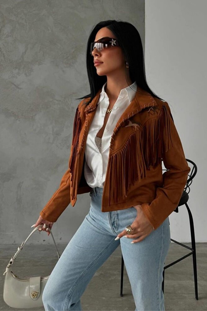 Kadın Western Süet Püsküllü Ceket