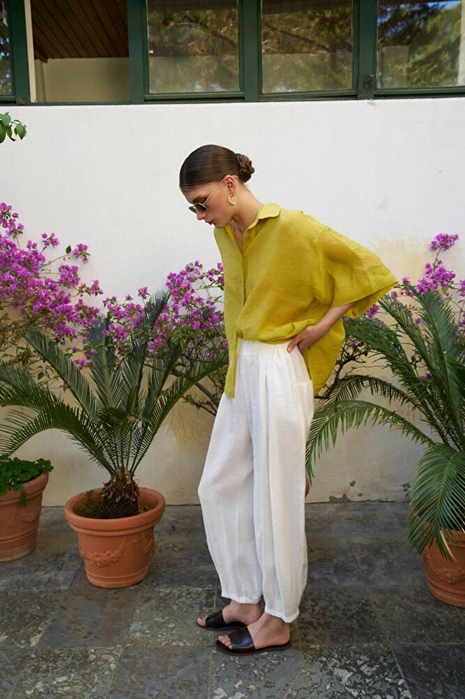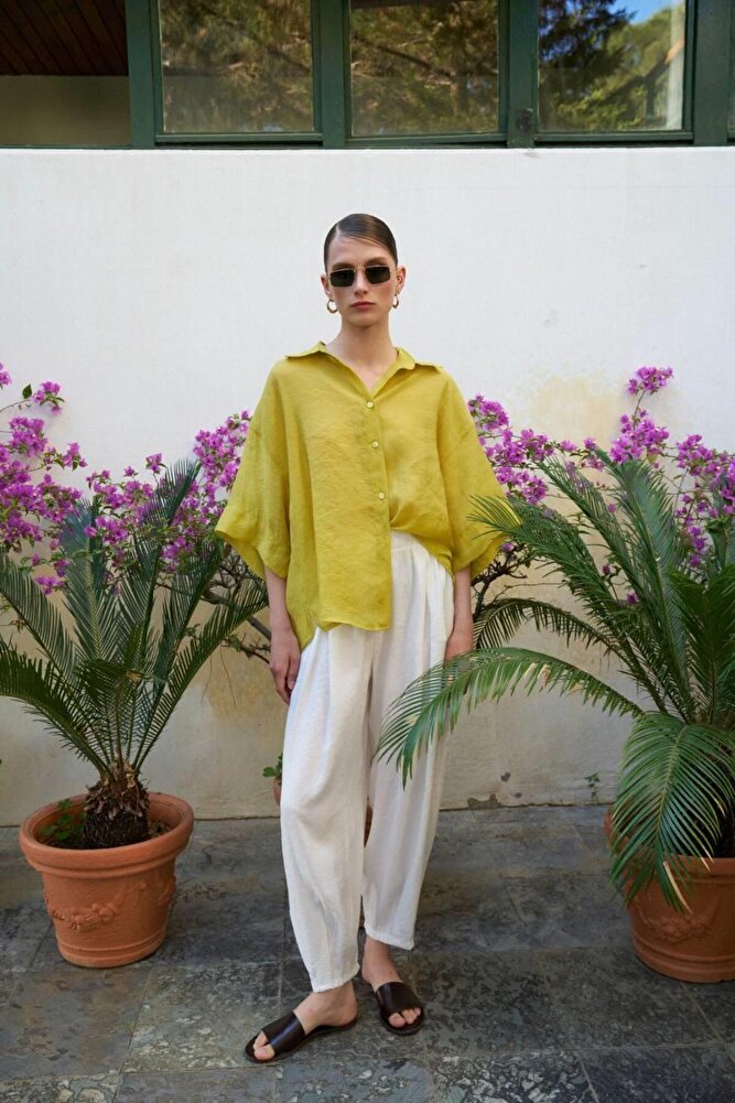 Yumuşak ve dökümlü ipeksi dokusuyla konforlu bir şıklık sunan bu gömlek, oversize kesimiyle modern bir duruş kazandırır.