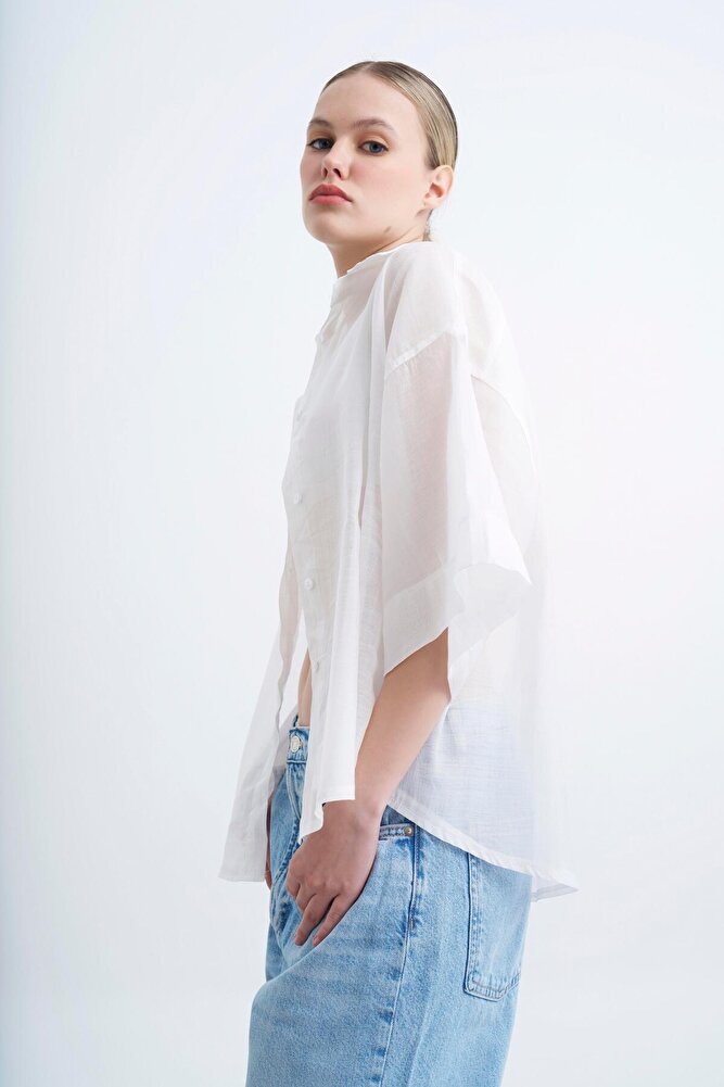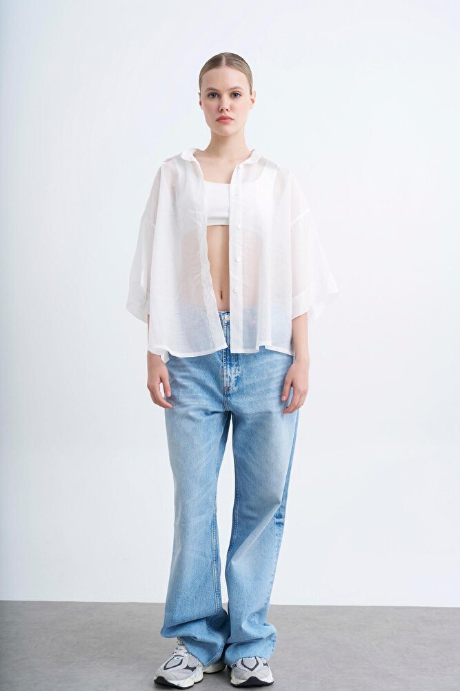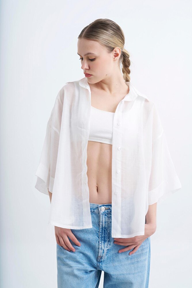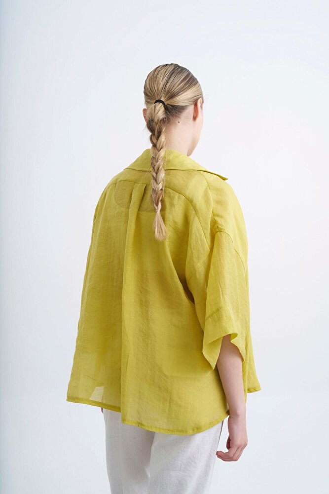 Kadın Yarım Kol Oversize İpeksi Gömlek
