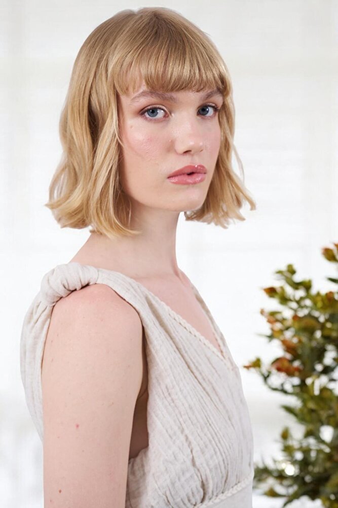 Doğal dokusu ile yaz aylarında serin ve şık bir seçenek sunar.